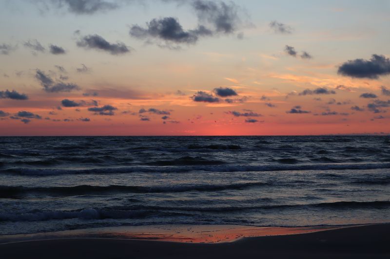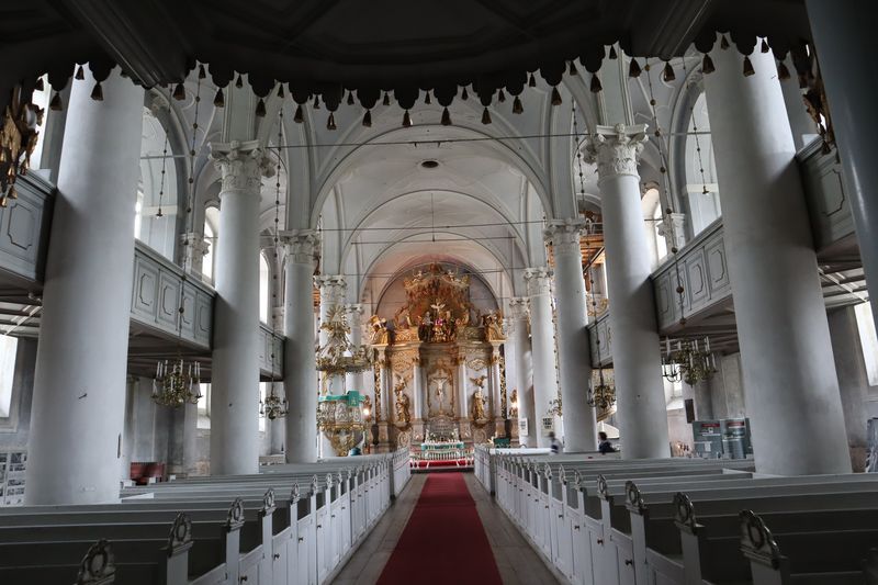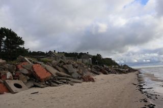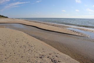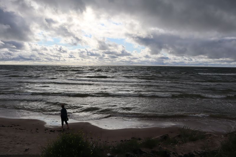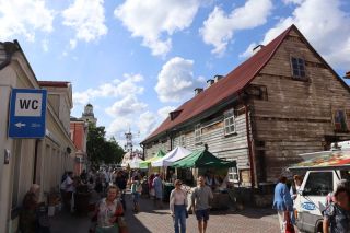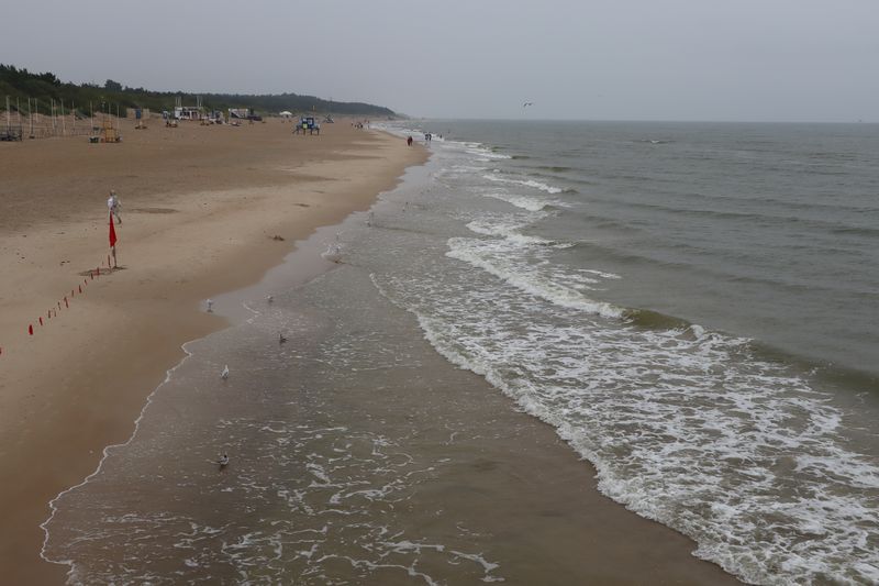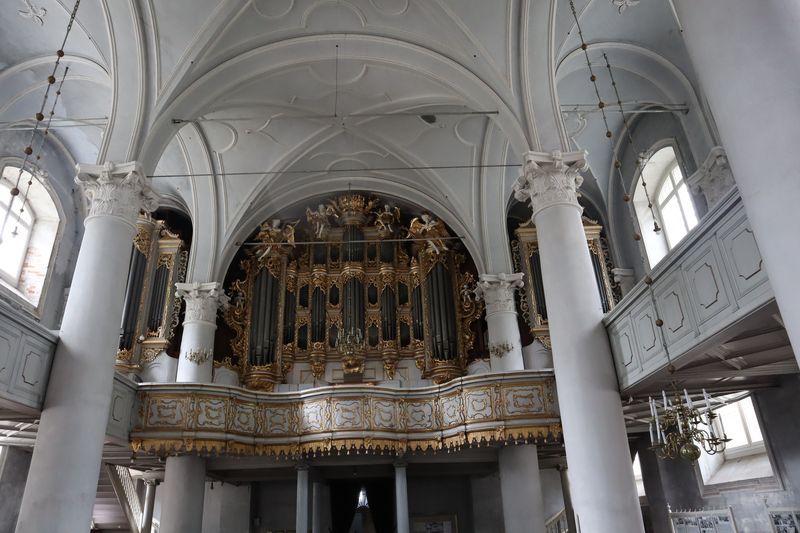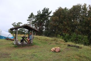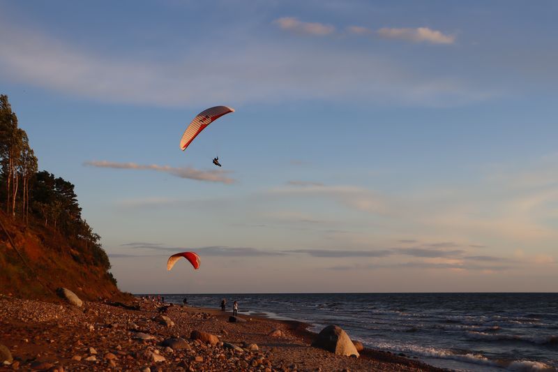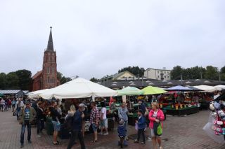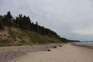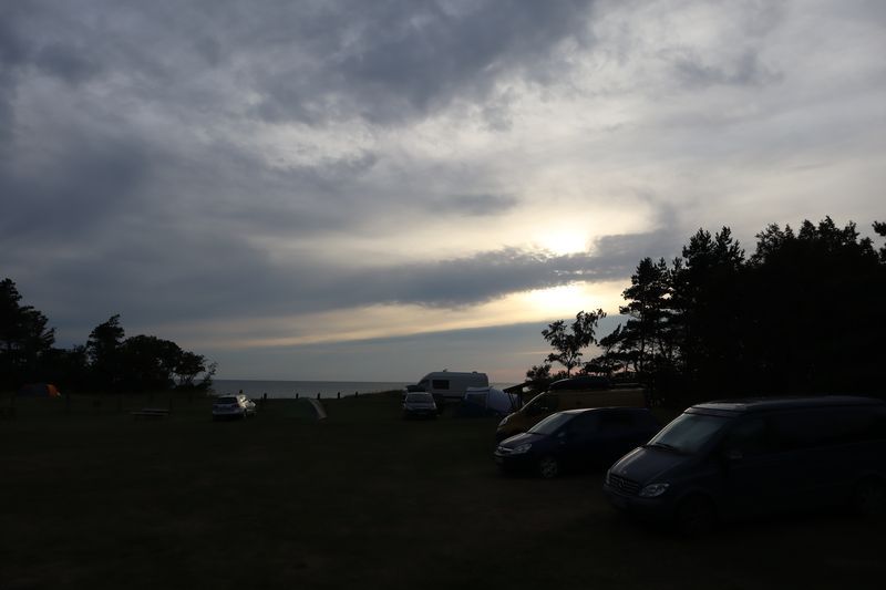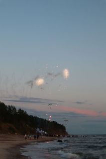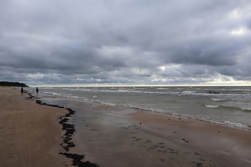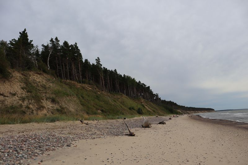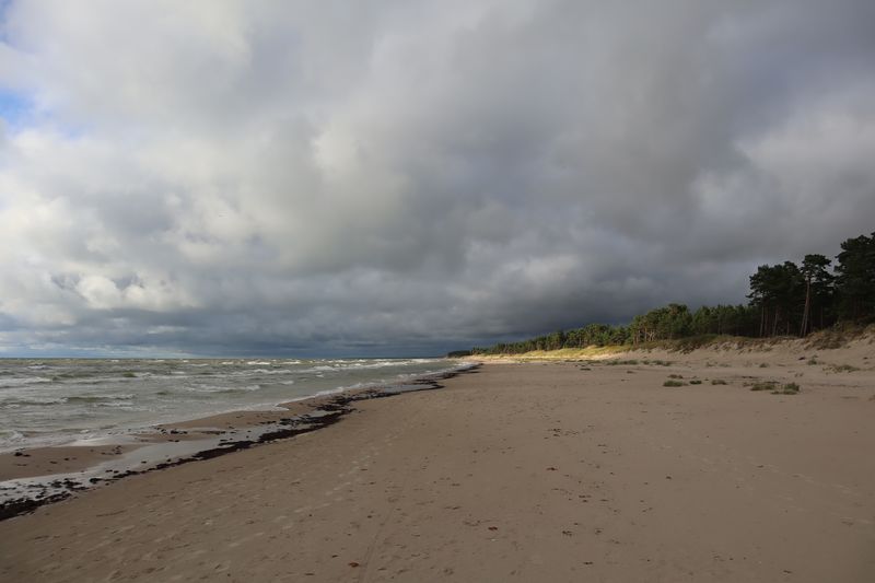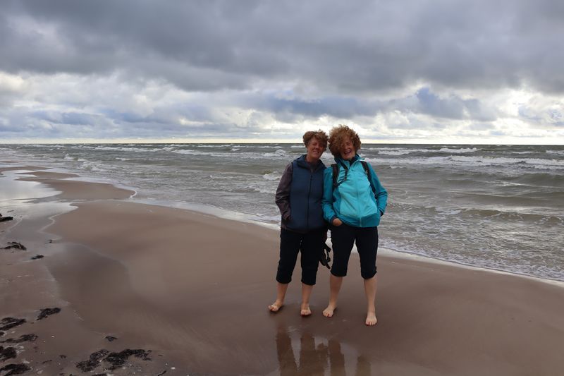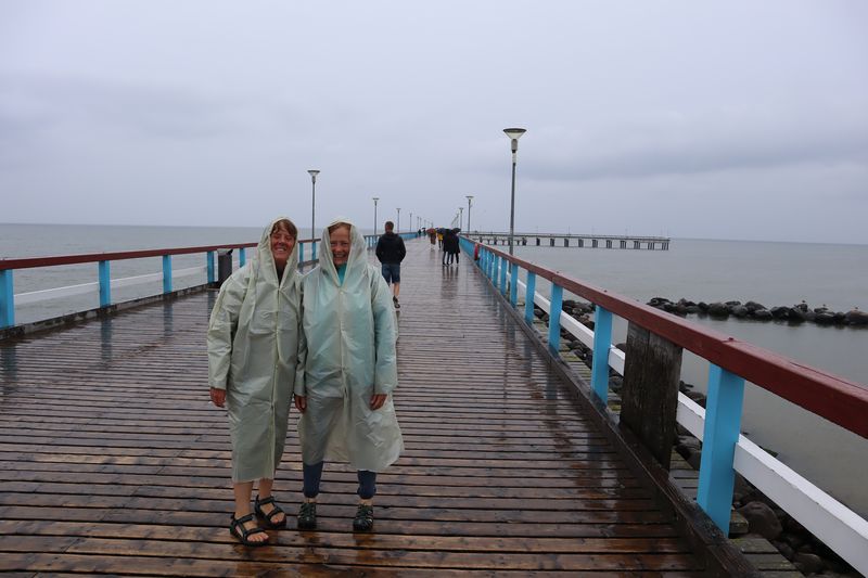 Wir fahren weiter und übernachten direkt am Meer in Jūrkalne mit einem breiten, feinsandigem Strand und langer Steilküste. Eine schöne Spinne am Morgen bringt Regenwetter und wir fahren nach Liepaja um die Stadt kennenzulernen. Hier gibt es auch einen schönen Wochenmarkt mit all den vielen, regionalen Produkten und der historischen Petermarkthalle neben der Petrikirche. Unser Auto parkt gleich dort und wir laufen in die Innenstadt zur Dreifaltigkeitskirche. Hier steht eine der größten historischen Orgeln Europas. Wir haben auch die Möglichkeit auf den Turm zu steigen und klettern hinauf zwischen den Übersetzungsstangen der Turmuhr und dem Uhrwerk, vorbei an zwei alten Glocken. Trotz regnerischer Luft freuen wir uns über den Blick über die Stadt mit seinen historischen Resten, der modernen Konzerthalle und dem Meer im Hintergrund. Leider wurde Liepaja im Krieg auch schwer zerstört und gerade von hier oben ist das deutlich zu erkennen. Das Regenwetter überredet uns zu einer Übernachtung in einer ursprünglichen Hütte in der Nähe von Bernāti, nur 100 Meter vom schönen Strand entfernt. Am Sonntagvormittag starten wir fröhlich in Richtung Palanga, überqueren auch gleich die Grenze nach Litauen. Unser Rundgang durch den mondänen Badeort beginnt mit einem anhaltenden Regenwetter. Wir überstehen einen großen Teil der Feuchtigkeit bei doppeltem Espresso und fahren weiter bis nach Karkle, kurz vor Klaipeda. Das kleine Familienhotel hat noch zwei Zimmer für uns, am Abend freuen wir uns über die Regenpause und die schöne Stimmung am Strand mit Gleitsschirmfliegern und Strandparty.