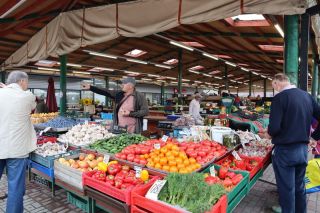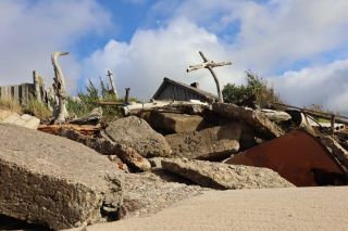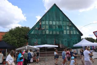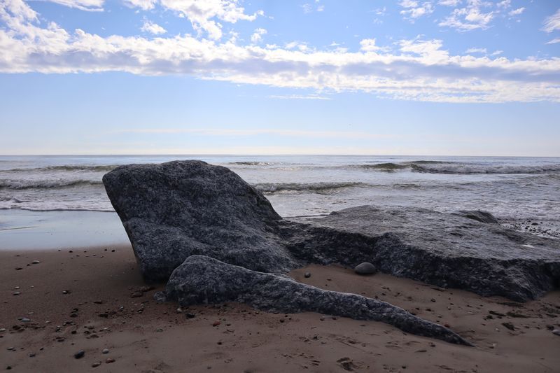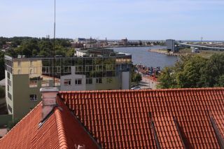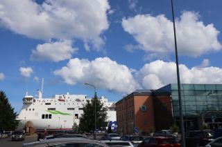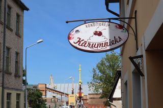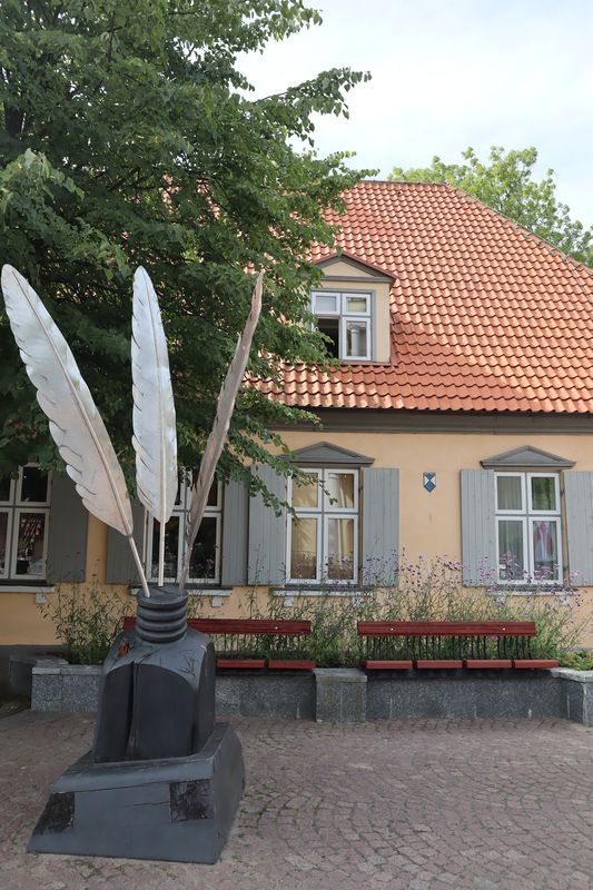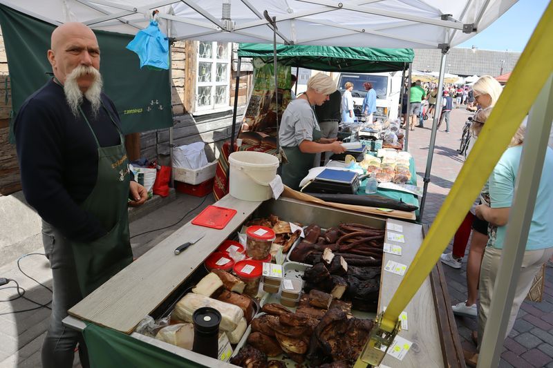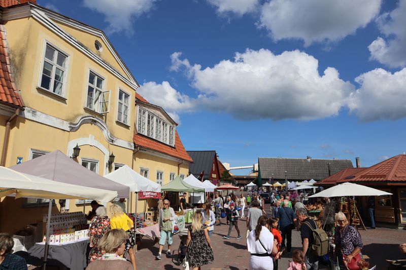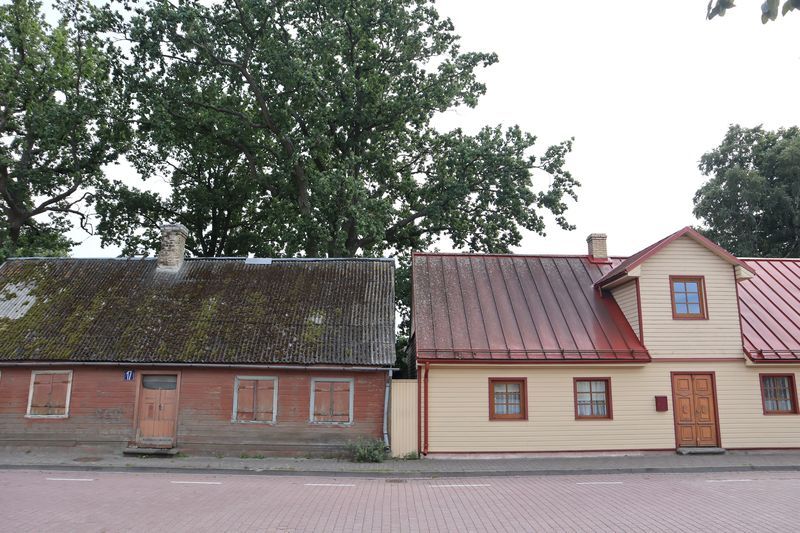 Die breite Einfallstraße in die Hafenstadt Ventspils bringt uns direkt neben den großen, schönen Freitagswochenmarkt, auf dem wir nun auch Brot, leckere, kleine Pfirsiche und gut geräucherte Schweinswurst mit viel Knoblauch kaufen können. Gleich dabei auch die Orthodoxe Kirche mit ihren blitzenden Türmen. Wir freuen uns über den Rundgang bei Sonne und Wind und kommen nicht an einer kleinen Konditorei, wo es leckere Törtchen gibt, vorbei. In der alten Burg gibt es eine gute Ausstellung zur Geschichte des Ortes und der Region und einen Hafenblick vom Turm. Überall in der Stadt trifft man auf Skulpturen eines Steinbildhauers, sehr passend zum Ort am Meer. Wir sind schon einmal vor 10 Jahren in Ventspils gewesen und bemerken, dass vieles erneuert und saniert wurde und der Ort nicht mehr so brüchig erscheint. Auch die gemütliche Holzhäusersiedlung am Stadtrand gibt sich teilweise modern und frisch.