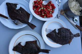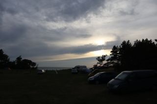 Am Ende von 3 Kilometern Schotterstraße finden wir einen schönen Campingplatz am Meer und genießen unseren Fisch mit etwas Hirse und Gemüse.