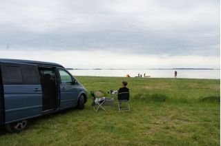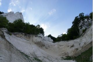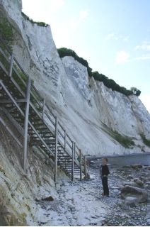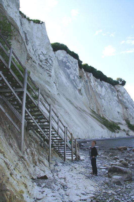 Wir haben den hübschen Ort mit seiner hochrenaissance ausgestatteten Pfarrkirche und dem gelbgetünchten Ortskern besichtigt. Nach dem Mittag sind wir dann doch ganz zügig in Richtung Møn gefahren. Wir wollten ja noch eine Wanderung zu den beeindruckenden Kreidefelsen machen. Gesagt getan, trepp ab und nach einer Weile hofften wir auch auf die Treppe hinauf, die dann zum Glück auch kam. Es war windstill und fast menschenleer. Ein beeindruckender Landschaftsort an der Ostsee. Kurz entschlossen haben wir uns auf dem weiträumigen Campingplatz gleich hier am Mønsklint zur Nacht niedergelassen.