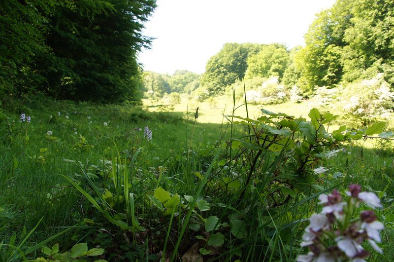 Am Dienstag haben wir gleich am Vormittag noch ein tolles Landschaftserlebnis gehabt. Auf einer Wanderung durch die Wiesen und den Wald von Møn nochmal zur Kriedeküste hin, haben wir wildblühende Orchideen gesucht und - hurra - auch gefunden. Im Halbschatten alter Eichen blühte das schöne Purpur-Knabenkraut.