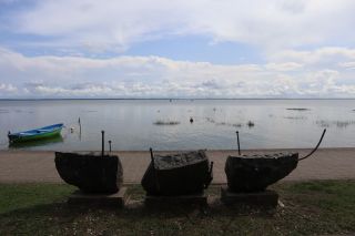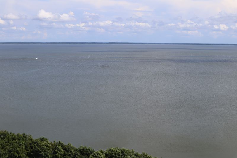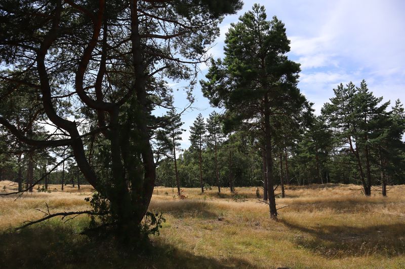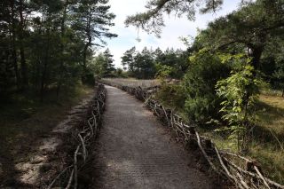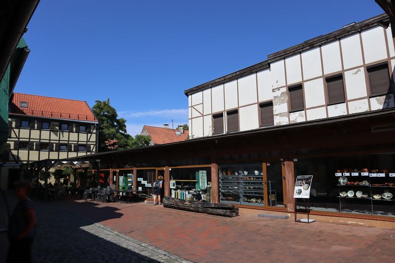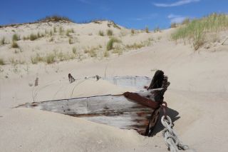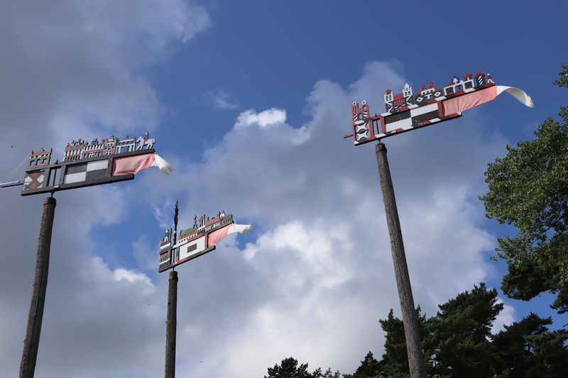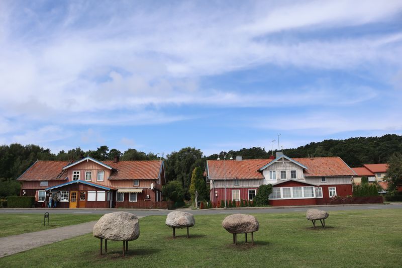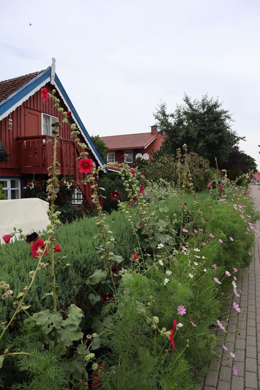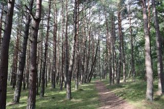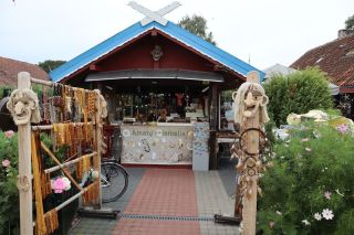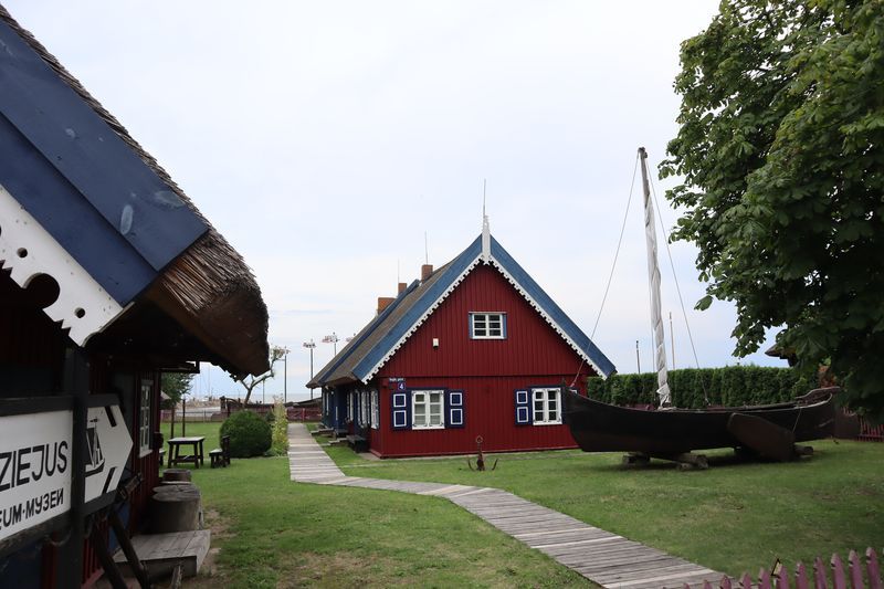 Wir wollen am Mittwoch die Kurische Nehrung noch etwas näher erleben und laufen auf der Boddenseite vorbei an der Bernsteinbucht mit tollen Holzskulpturen in den kleinen Ort Juodkrante. Die Strandpromenade zieren viele sehr schöne Steinskulpturen und wir bekommen einen kleinen Hunger, nicht wegen der Skulpturen, sondern wegen der langgezogenen Ortschaft. Es ist aber nicht langweilig. Es gibt viele hübsche Häuser und eine kleine Steinkirche zu bewundern. An einem Fischverkauf direkt an der Straße werden wir sehr nett beraten und kaufen frisch geräucherten Wels. Etwas südlich liegt die große Schwarz Ort Düne zu der wir in der wunderbar warmen und würzigen Nachmittagsluft hinauf steigen. Hier findet man auch die Reste eines versandeten Fischerdorfes.