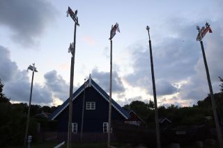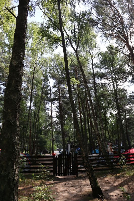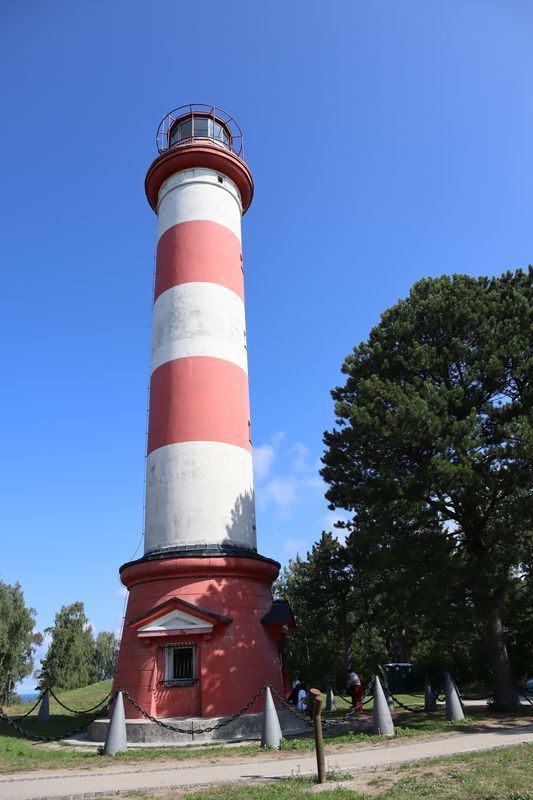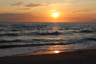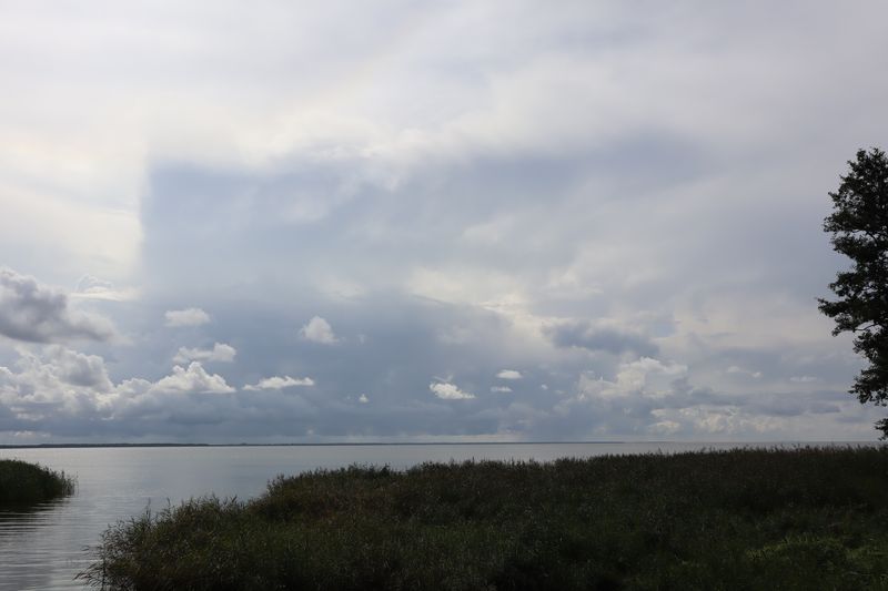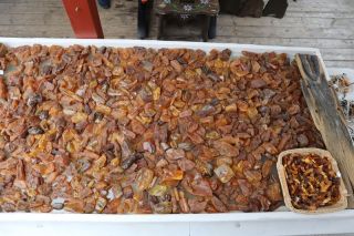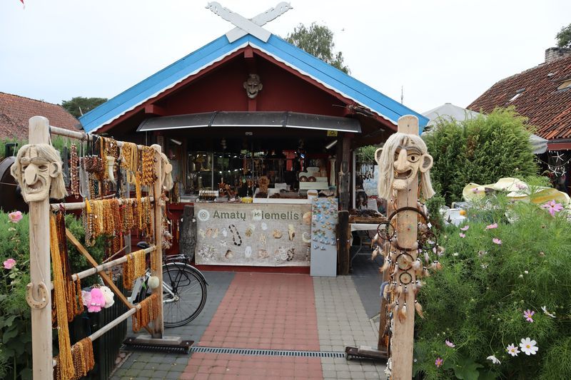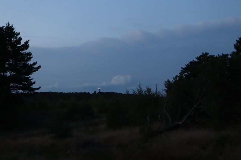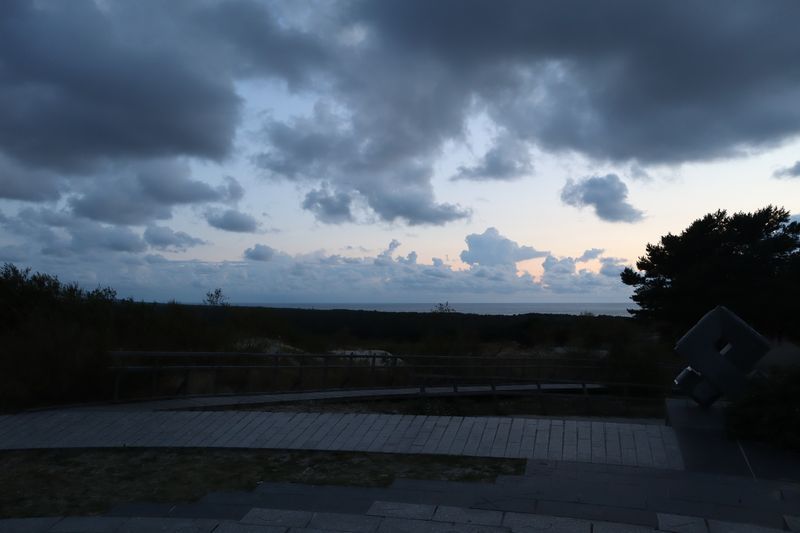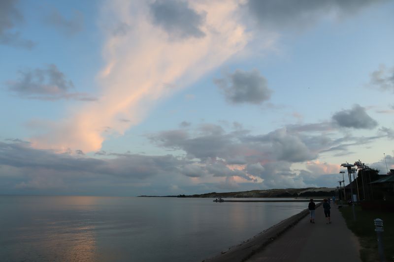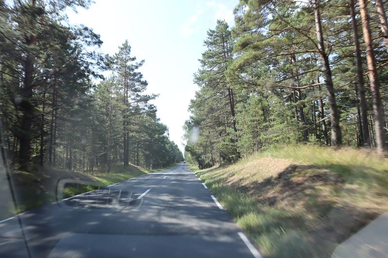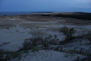 Am Dienstagvormittag werden wir von einer der Fähren auf die schmale Kurische Nehrung gebracht und fahren über vierzig Kilometer in den Nationalpark bis nach Nida. Wir hoffen einen Stellplatz auf dem einzigen Campingplatz auf der Litauischen Seite zu bekommen und freuen uns über einen Waldstellplatz auf dem geräumigen Areal. Es ist schon reichlich voll, es herrscht aber eine entspannte Stimmung. Gleich packen wir unsere Strandtasche und sind bald in den Ostseefluten im warmen Wasser beim Baden zu finden. Dann wollen wir noch kurz etwas einkaufen und sind abgelenkt durch einige schöne, alte Fischerhäuser am Hafen und einem Bernsteinschmuckverkauf. Das Gold der Ostsee kann man hier auch wunderbar ungeschliffen auf einem großen Tisch bestaunen und natürlich kaufen. Am späten Abend laufen wir vom Zeltplatz hinauf zur Weißen Düne. In der Dämmerung blinkt der Leuchtturm von Nida.