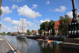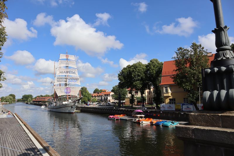 Am Montag freuen wir uns auf Klaipeda, das Tor zur Kurischen Nehrung. Der Hafen begrüßt uns mit alten und neuen Speichergebäuden und der alten Drehbrücke in Funktion. Unseren Altstadtbummel beginnen wir am Theaterplatz mit dem Denkmal für Simon Dach und seinem berühmten Ännchen von Tharau. Der Stadtkern wird von einigen historischen, erhaltenen Gebäuden durchzogen, viele sind schön saniert. In einem der Speicherhöfe leben und arbeiten bildende Künstler, es gibt eine Grafikwerkstatt. An den Orten in der Stadt wo einmal Kirchen standen, stehen Glockenskulpturen zum Gedenken an den verheerenden Stadtbrand im 19. Jahrhundert. Auf der anderen Seite des Wassers laufen wir eine breite Fußgängerzone mit vielen Bänken in Richtung des alten Friedhofes, heute ein Park mit über 100 Skulpturen. Zurück über eine der Brücken gehen wir hinauf zu einem Blick über die teilweise sanierte Wallanlage der alten Stadt. Bald schließt sich unser Bummel am Hafen, wo uns die bekannten Kurenwimpel begrüßen. Wir feiern den Abend mit einem Strandspaziergang in Karkle und verabschieden uns von dem kleinen Ort.