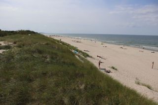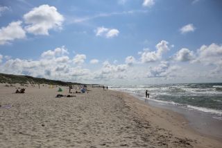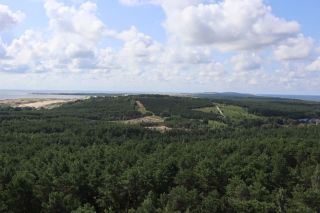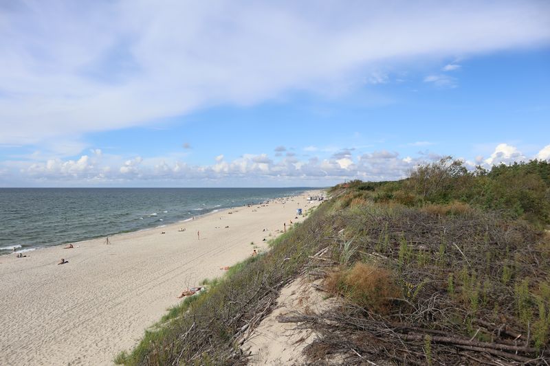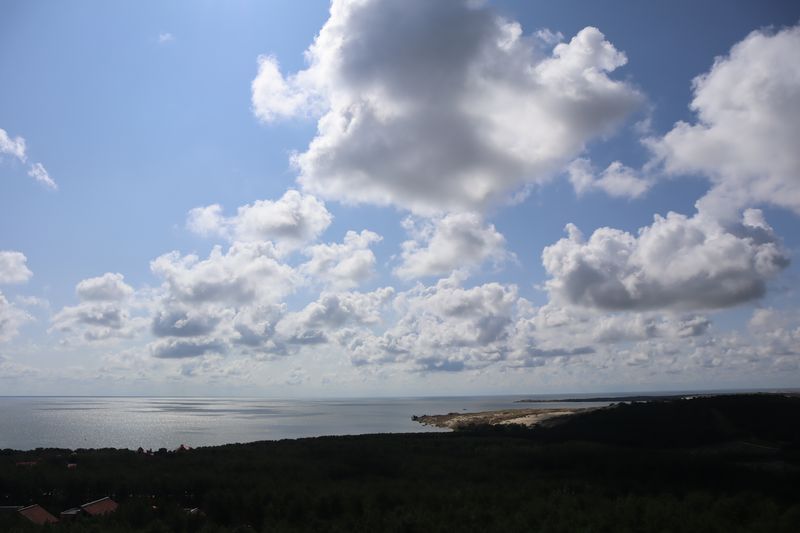 Wir wollen gerne noch einmal zum wunderbaren, weißsandigen Strand zum Baden. Der Weg ist nicht weit vom Campingplatz aus durch den duftenden Kiefernwald. Am Abend gibt ein leckeres, warmes Essen in einem der kleinen Restaurants, mit Platz im Garten und einem Verdauungsrückweg durch die Weiße Düne zu unserem Schlafplatz. Den Leuchtturm von Nida besteigen wir am Donnerstagmittag. Der wunderbare Blick über die Kurische Nehrung lässt die vielen Stufen nicht bereuen. Heute hören wir schon das Meer von weitem brausen und es ist wunderbar in den Wellen des warmen Wassers zu baden. Wir verabschieden uns mit einem gemeinsamen Tee von Cornelia, die wieder mit der Fähre nach Hause fährt.