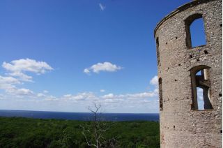 In Helsingør verabschiedeten wir uns von Dänemark und nahmen die Fähre nach Schweden. Wir hatten wieder Lust auf einen Platz an der Küste, den fanden wir in Simrishamn. Am nächsten Tag entschlossen wir uns doch noch nach Öland zu fahren, um die besondere Natur zu erleben. Eine Wanderung in die Trockenlandschaft "Stora Alvar" mit ihren besonderen Pflanzen und Tieren ließ uns auch wieder wildes Knabenkraut finden. Wir fuhren bis zur Südspitze mit ihrem besonderen Licht. Gestern wollten wir gerne noch die Schlossruine Borgholm sehen, daran sind wir schon zweimal vorbei gefahren, imposant und wunderbar über der Ostsee gelegen. Gleich daneben befindet sich das königliche Sommerhaus mit seinem ordentlich gepflegtem, frühsommerlich blühenden Garten. Auch hier war fein ausgewählte Kunst, vor allem mit Glasskulpturen zu sehen.