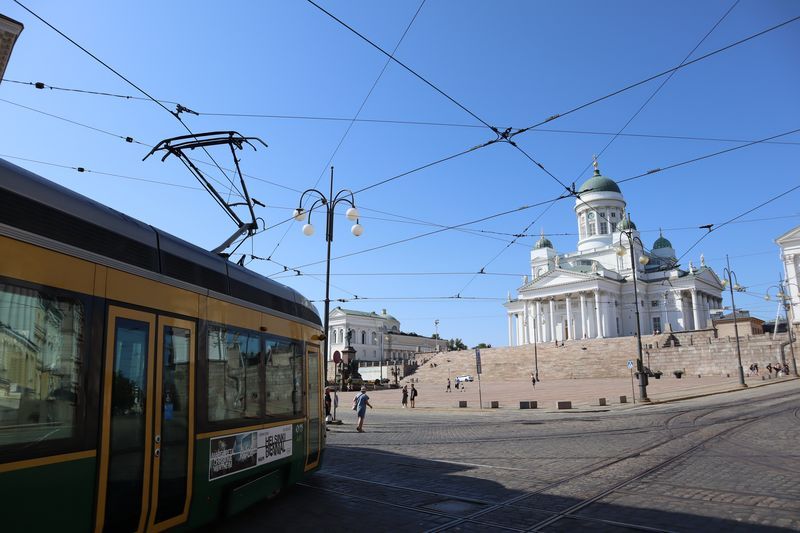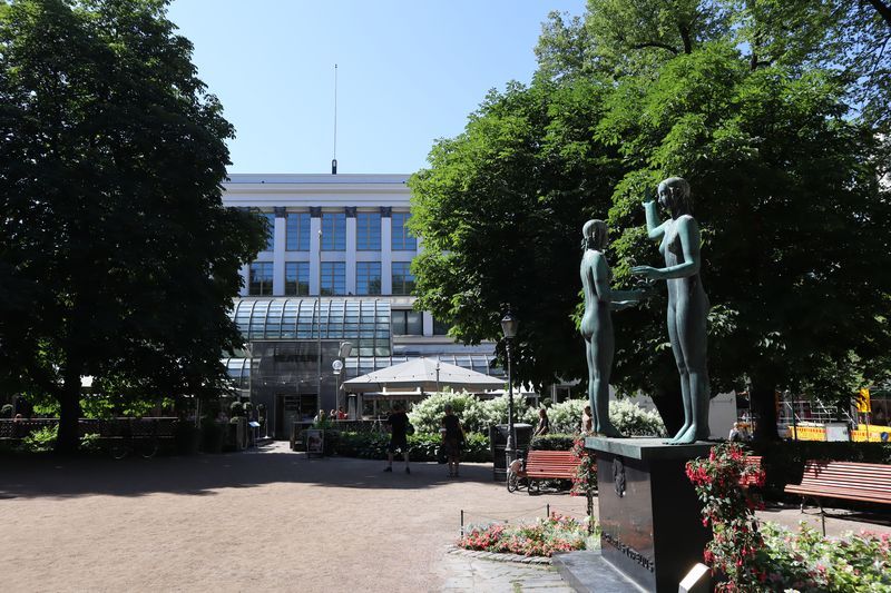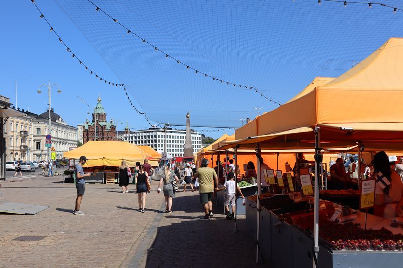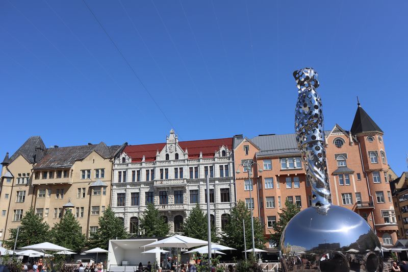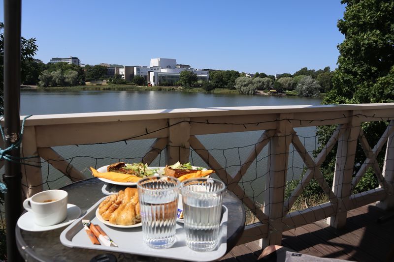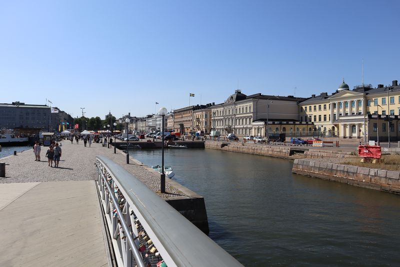 Der Campingplatz liegt weiträumig im Grünen, inmitten des Stadtrandes, unweit der Endhaltestelle der Metro. Am Sonnabendmorgen frühstücken wir in Ruhe und wollen mit der Metro ins Stadtzentrum fahren. Nur gibt es statt Metro Schienenersatzverkehr mit Bussen. Ab heute wird über einige Tage am Streckennetz gebaut. Der Bus bringt uns bis zum Platz am Hauptbahnhof und wir starten unseren Stadtrundgang von da aus. Wir haben uns die Kunsthalle vorgenommen, 10 Minuten um die Ecke, mit einer aktuellen Fotografieausstellung. Jetzt ein stilvolles Café wäre gut und wir suchen uns ein angesagtes Solches, inmitten einer wasserreichen und grünen, blühenden Insel. Den Felsendom sehen wir leider nur von außen, schade - heute geschlossen. Weiter geht´s zu Fuß und wir bewundern historische und sehr moderne, vielfältige Architektur. Die bekannte Markthalle am Hafen wollen wir auch noch erleben, auch um etwas eingelegten Fisch zu kaufen. Von da aus ist es zum Glück nicht sehr weit bis zur großen Kathedrale, mit ihrer sehr schön klingenden Orgel. Wir erleben gerade ein paar Übungsminuten des Kantors und freuen uns sehr darüber. Am späten Nachmittag sind wir ganz schön pflastermüde und nehmen den Bus zurück in Richtung unseres "zu Hauses". Gleich nutzen wir noch den Platz im Fernseh- und Spielzimmer mit seinem guten WLAN um die heutigen Bilder zu laden und etwas zu schreiben. Die Fähre morgen Vormittag nach Tallinn ist auch schon gebucht.