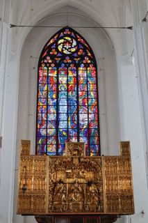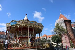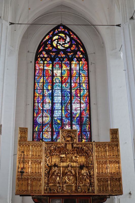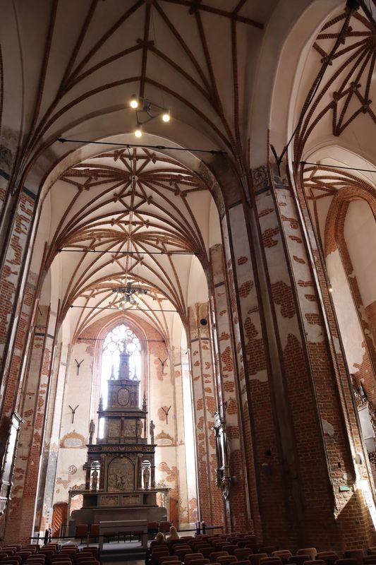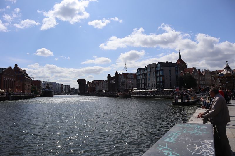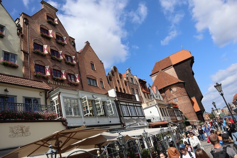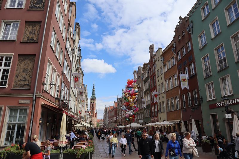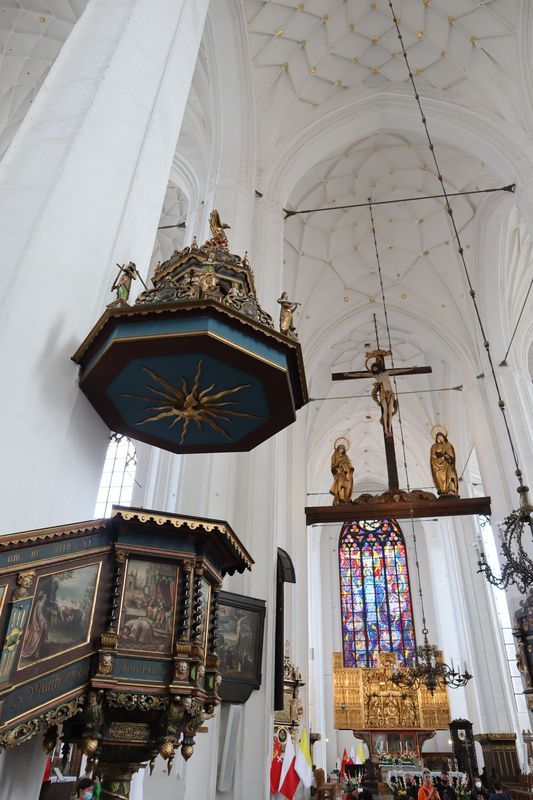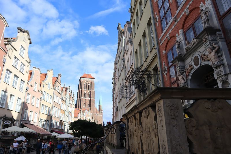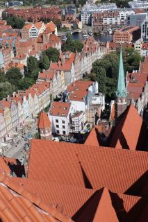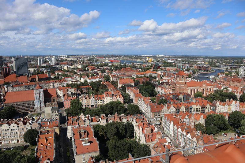Wir fühlen uns wohl auf dem stillen Waldplatz und verabschieden uns am Morgen mit einem frischen Ostseebad. Es geht direkt an der Küste entlang über eine der vielen Huppelstraßen zur Fähre über die Weichselmündung, weiter nach Gdansk. Wir bekommen auf einem der drei Stadtcampingplätze am Stogi Plaza einen Stellplatz, direkt im Wald gelegen, unweit des breiten, weißen Sandstrandes, die Hafenanlagen im Blickwinkel. Am Nachmittag fahren wir ca. eine halbe Stunde mit der Straßenbahn bis ins Stadtzentrum. Unser Stadtrundgang beginnt mit dem anstrengenden Aufstieg zum Marienkirchturmausblick über die mittelalterliche Stadt. Der gotische Altar, das Sanktuarium und die Astronomische Uhr sind besonders sehenswert in der weiträumigen Hallenkirche. Wir laufen uns noch ziemlich pflastermüde in den Abend hinein und sind froh mit der Straßenbahn wieder bis fast vor das Campingplatztor gefahren zu werden. Es ist auch noch Zeit für eine halbe Stunde zum unweiten Strand zu gehen und einmal übers Wasser zu schauen. Am Mittwoch nehmen wir uns nocheinmal Zeit für einen Stadtbummel, freuen uns über die wärmende Sonne bei dem doch recht frischen Wind. Wir gehen zuerst zur innerstädtischen Markthalle um frisches Brot, Wurst und leckere Himbeeren und Quark zu kaufen. Wir lassen uns treiben über die Promenade am Hafen, zur Katharinenkirche, die zu einer Konzertkirche ausgebaut ist und in der weltliche und kirchliche Veranstaltungen stattfinden. Gleich daneben steht auch noch die Nikolaikirche, die im Krieg nicht zerstört wurde und deren wertvolle Rokkokoausstattung erhalten ist. Die lebendige, sehr belebte Stadt hat uns gut gefallen.
