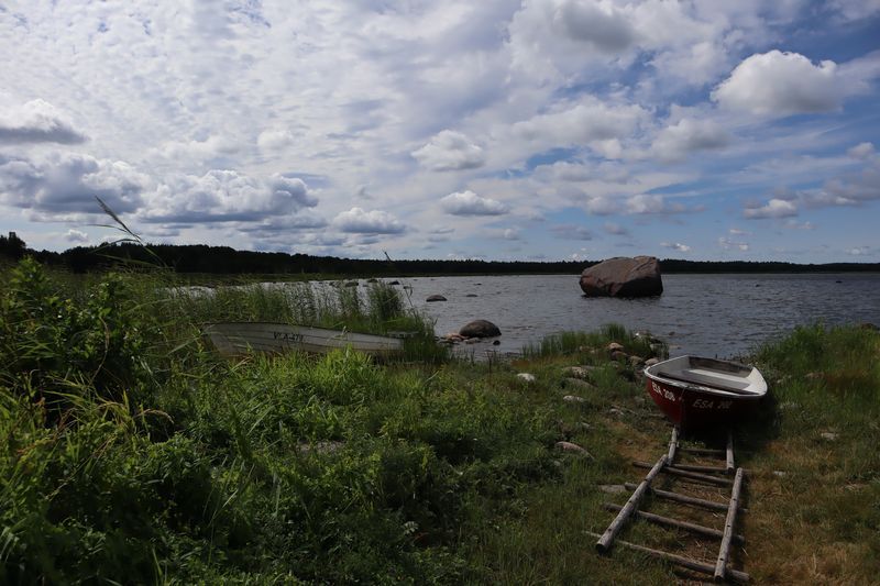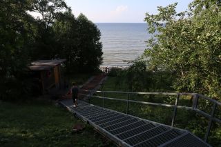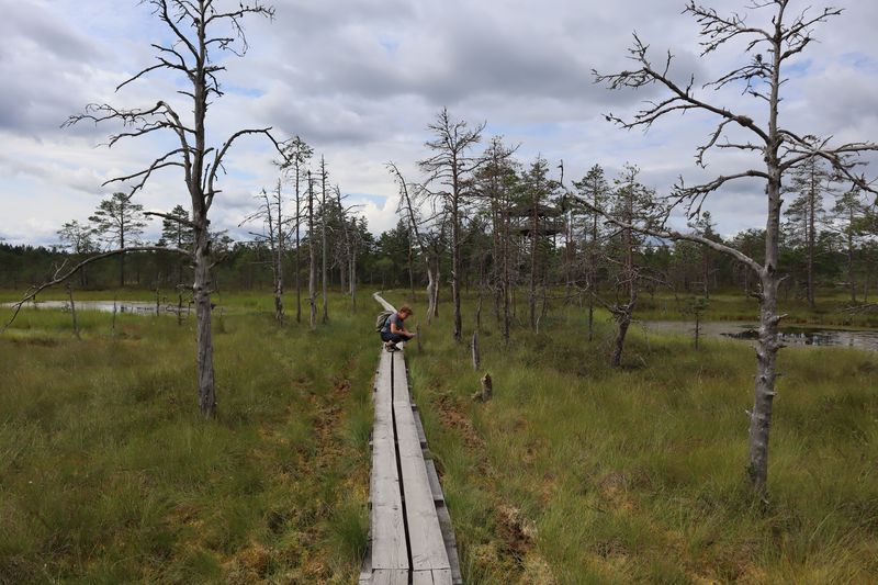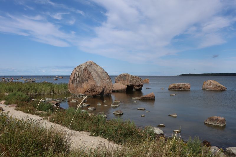 Am Montag ging es in die Natur. Der Lahemaa Nationalpark mit seinen vier Halbinseln bietet vielfache, tolle Naturerlebnisse. Wir wandern auch durchs flache, warme Wasser im größten Findlingsfeld Estlands auf der Halbinsel Käsmu. Vorher fanden wir spontan die Ruine einer alten Vasallenburg, direkt an einer alten Hafenbucht. Für die Nacht entdecken wir mitten im Nationalpark einen Platz an einem kleinen See. Wir stärkten uns zum Frühstück mit frischen Heidelbeeren und Quark und waren so fit für den Tag. Zuerst starteten wir zu einer Wanderung durch das Viru Moor, wo wir viele seltene Pflanzen wie z.B. Sonnentau bewundern. Außerdem gab es die Möglichkeit in einem der Moorseen zu baden. Nach dem Mittag fuhren wir nach Palmse und besichtigten eines der vielen noch erhaltenen Herrenhäuser hier im estnischen Norden. An der Spitze der Halbinsel Pärispea finden wir ein Kleinod und sind erstaunt über eine vielfältige Ausstellung zeitgenössischer Kunst in einem verrückten Museum, direkt am Hafen. Gegen Abend fahren wir doch noch in Richtung Tallinn und bekommen zum Glück einen Stellplatz am Hafen neben Yachtclub und altem Olympiazentrum, unweit der Ruine des St. Birgittenklosters. Von der Ferne grüßt im Abendlicht Tallins Stadtansicht mit Hochhäusern und markanten alten Kirchen.