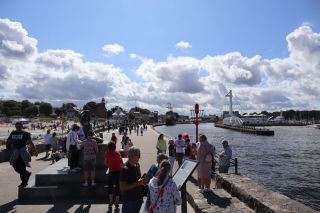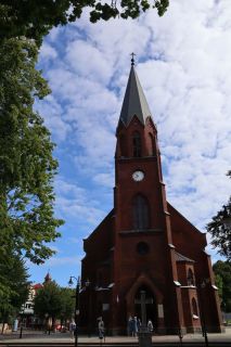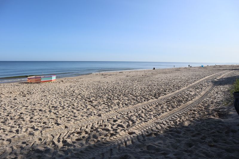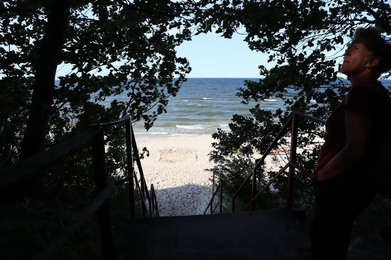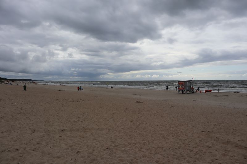 Der Sonnabend hat Ustka und Darlowo im Programm und die Sonne scheint zu unserer Freude. Der kleine Hafenort Ustka empfängt uns mit vielen netten Häusern in Bäderarchitektur, einer neugotischen Kirche, der alten Seenotretterstation, dem kleinen, schicken Leuchtturm. Das Öffnen der Drehbrücke an der Mole ist genauso eine Attraktion wie die Hafenrundfahrten mit nachgebauten Seeräuberschiffen. Die sommerlichen Strände sind gut besucht und die salzige, würzige Ostseeluft wird meistens überdunstet vom Potpurri des Urlaubermarktes in allen Straßen. Nach einer halben Stunde Fahrt liegt Darlowo an unserer Küstenstraße, eine Kleinstadt etwas ab vom Urlaubstrubel. Die große Stadtkirche, die alte Burg am Fluss und der gemütliche Stadtkern laden zum kurzen Bummel und einem Kaffee ein. Für den Abend wünschen wir uns einen ruhigen Stellplatz am Meer und unsere APP navigiert uns zu genau solch einem Ort. Wir freuen uns über Entspannung und Ruhe mit direktem Strandzugang am Geheimtipp in Garski. Am Abend und am Sonntagmorgen lädt die Ostsee zum erfrischenden Bad. Wir entschließen uns einen Tag länger zu verweilen und liegen ein paar Stunden in Sonne und Wind am Strand. Am Nachmittag laufen wir noch zum nahegelegenen Leuchtturm. Wir klemmen uns den Aufstieg, denn hier ist auch Sommerwochenendurlaubsbetrieb. Der Abend bringt frischen Wind und brausende Ostsee.