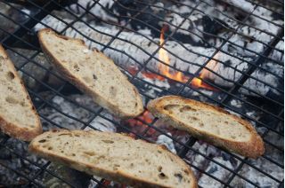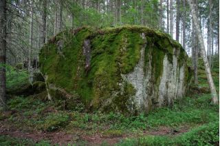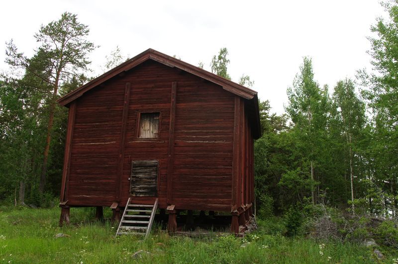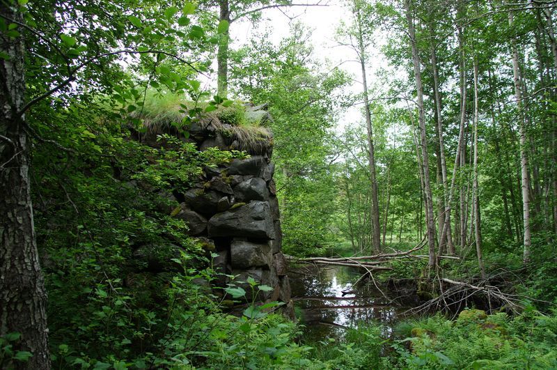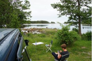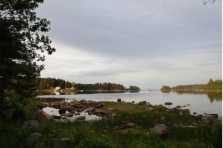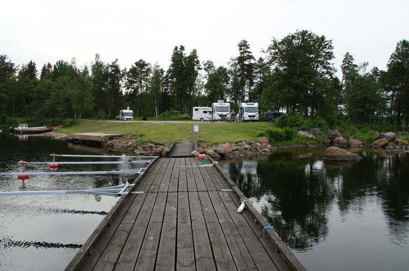 Wir fahren weiter an der Küste entlang auf der Suche nach nettem Halt für die Nacht. Wir finden auf einer Landzunge den Ort Långvind. Der kleine Hafen bietet noch Platz für uns, bei einigen anderen Womos von Landsleuten. Wir werden nett begrüßt, ein Mann hat auch am Ufergrillplatz etwas Feuer gemacht und wir sind eingeladen unser Brot zu rösten. Gravedlachs gibt´s auch dazu, was will man mehr in der stillen Abendsonne. Wir haben Lust den Ort noch zu erkunden, treffen auf einen Kultur- und Naturpfad, der uns einen historischen, mittelalterlichen Industrieort kennenlernen lässt. Neben einem stillgelegten Dampfsägewerk schlängeln wir uns durch eine von der Natur zurück geholte Eisenerzhütte aus dem 17. Jh.. Die mystisch blau schillernden Ziegelsteine, gepresst aus Verhüttungsresten, blitzen zwischen den Sträuchern und unterm dem Moos hervor. Wir werden sehr von den vielen Mücken getrieben und sitzen noch eine Weile am nicht mehr dunkelwerdenden Firmament.