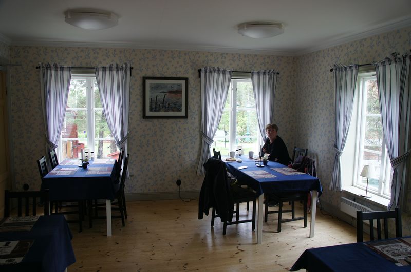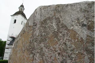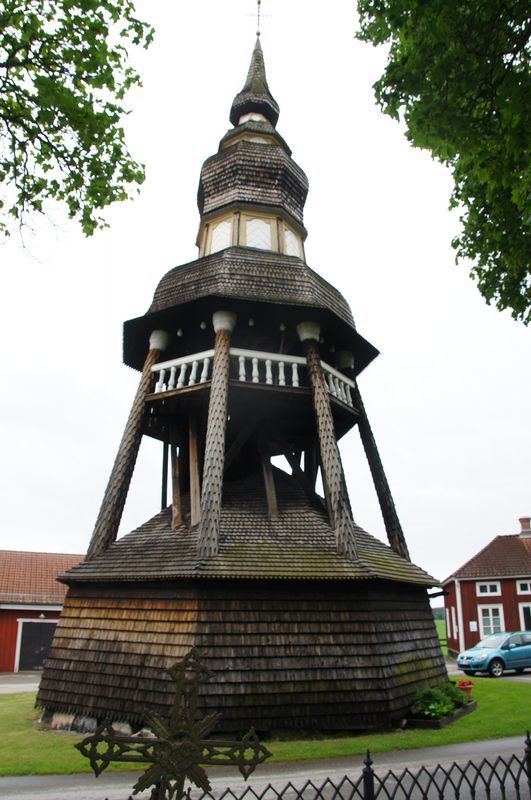 Die Nacht schiebt wieder ein Gewitter über die Küste und wir möhlen unsere Sachen zurecht und fahren am Morgen gleich mal weiter in Richtung Sundsvall. In der kleinen Stadt Hudiksvall gibt es in einem netten Café Frühstück. Wir biegen zurück auf die E4 und halten gleich spontan noch einmal an, an einer markant, in der Landschaft auffälligen Kirche, mit ihrem landestypischen, schindelgedecktem Glockenturm. Eine zauberhaft abstrakte Madonna scheint zu summen, denn wir hören gerade der Übungsstunde der Kantorin etwas zu.