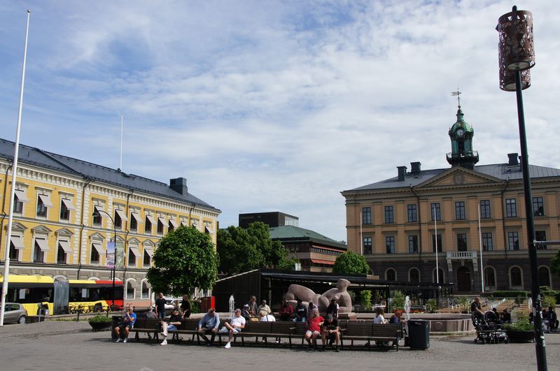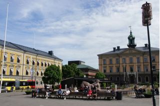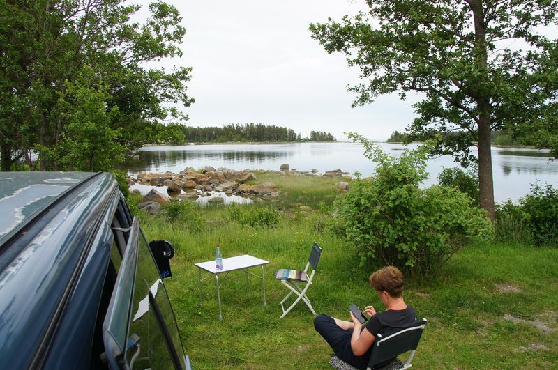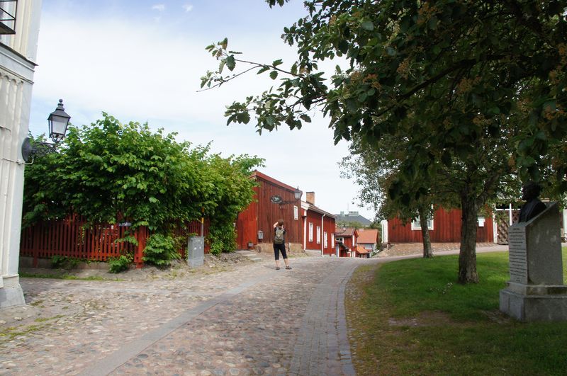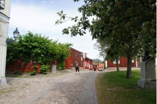 Nach der kühlen Nebelnacht mit einigen Trommeltropfen aufs Autodach grüßt uns bald die wärmende Morgensonne und es zieht uns, wie die Nachbarsfamilie mit ihren Kindern, an den Strand. Wir entschließen uns zu baden. Diese Erfrischung können wir brauchen und wir fahren in Richtung Gävle, eine der nächsten Großstädte an der Küste. Wir haben von einer Altstadt gelesen, die wir inmitten moderner Strukturen finden, völlig menschenleer. Diese Holzhäuserorte sind meistens nur hübsche Wohngebiete für die, die sich diese historischen Häuschen leisten. Es fehlen geöffnete Läden und Cafés, was sicher auch an der Coronalage hängt. Wir suchen uns noch etwas Obst in der Einkaufsmeile, ärgern uns bei der Rückkehr zum Auto über einen böse teuren Strafzettel. Das kommt von unserer Unkenntnis der elektronischen Parkgebühreintreiber.