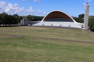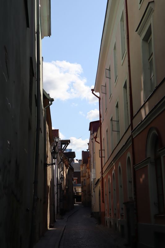 Nach einer sehr windigen Nacht an Tallinns Marina, grüßt die Stadt mit einem frischen, klaren Morgen und wir sehen uns noch die ehrwürdigen Klostermauern von St. Birgitta an. Auf dem Weg in die Stadt liegt auch ein bedeutungsvoller Ort für Estland, das Sängerfeld. Da wollen wir auch noch hin. Hier begann für das moderne Land die friedliche Revolution, indem die Esten sich auf diesem weiträumigen Hang zum Singen ihrer Volkslieder trafen, obwohl es von der Sowjetregierung verboten war. Heute finden hier vielfältige Veranstaltungen statt. Gleich drei Ecken und eine Baustelle weiter entdecken wir das Barockschloss Katharinental mit seinen gepflegten Parkanlagen mitten im Stadtteil Kadriorg. In einem kleinen Café genießen wir eine super leckere, kalte Gurkensuppe. So gestärkt, drehen wir noch eine Runde durch das Viertel mit den schicken, alten und neuen Holzbauten.