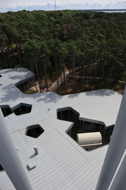 Für die heutige Übernachtung haben wir uns ein Hotelzimmer in der Altstadt gesucht und können von hier aus gemütlich einen Bummel starten. Die St. Olavskirche ist leider wegen Bauarbeiten zu, also freuen wir uns an ihrem äußeren, erhabenen Anblick. Bis in den späten Abend sehen wir uns Altbekanntes und Neues in dieser schönen, alten Hansestasdt an. Zum Abschluss gibt es noch einen Blick vom Domberg. Am Morgen wollen wir noch zum nahegelegenen Markt am baltischen Bahnhof gehen, auch um in der riesigen Vielfalt etwas Obst und Fisch zu kaufen. Die Reise geht weiter in Richtung Westen an der Küste entlang. Cornelia gab uns einen guten Tipp, auf der Halbinsel Lohusalu befindet sich das Arvo Pärt Zentrum. Die einzigartige Architektur, ein toller, ins Landschaftsbild eingefügter Aussichtsturm mit Meeresblick gehen auf das Schaffen des berühmten Komponisten gefühlvoll ein. Wir sind froh, dass wir dahin gefunden haben.