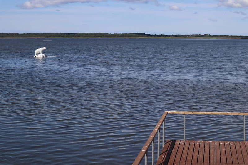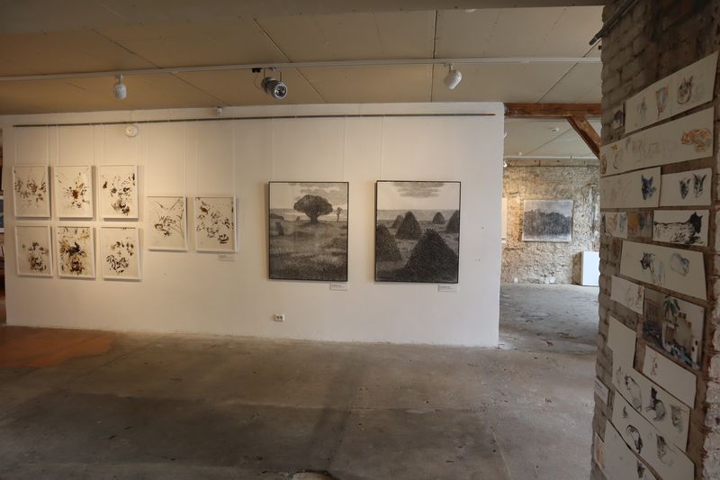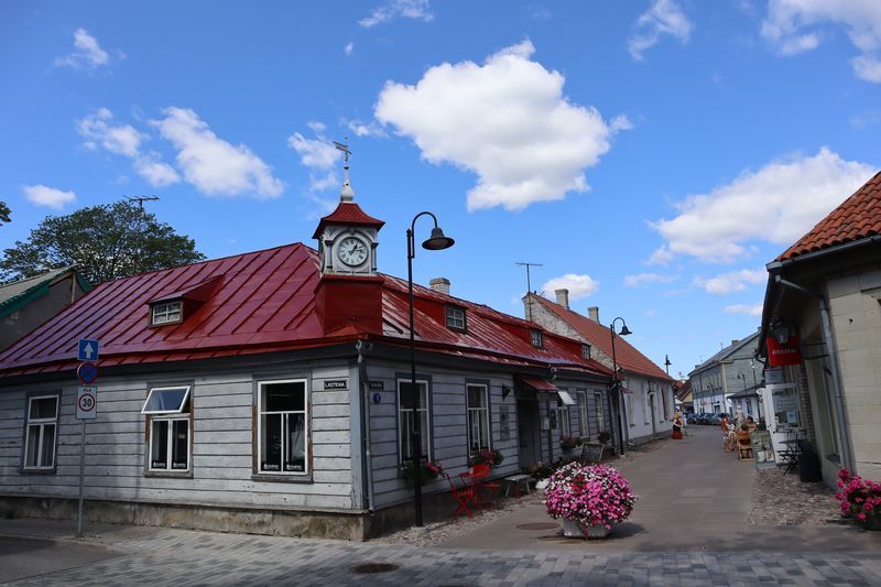 Der Freitagmorgen beginnt für uns mit frischen Brötchen regionaler Art und wir sind bald in der naheliegenden kleinen Kurstadt Haapsalu. Wir umrunden die alte Bischofsburg, leider ist der Eintritt für die Dombesichtigung unangemessen und es springt dafür der Besuch eines Künstlerhauses mit Grafikwerkstatt und tollen Arbeiten der Künstlergemeinschaft heraus. In Haapsalu ist es still und wir entdecken einen uralten Friedhof mit Kapelle und drehen die Stadtrunde vorbei am schön erhaltenen Zarenbahnhof. Am Ende der beiden Landzungen an denen die kleine Stadt liegt, fallen wir förmlich in den alten Kultursaal des Kurortes, wo wir lecker und frisch mit Seeblick essen. Direkt neben dem kleinen Markt, wo unser Auto parkt, sehen wir noch die Gebäude der hiesigen Kunstschule. Da ist natürlich Ferienzeit. Wir haben uns bei unseren Gastgebern in Pärsama auf der Insel Saaremaa für den Abend angesagt und müssen leider sehr lange wegen der Fährüberfahrt anstehen. Um so schöner ist die Überfahrt dann endlich nach Muhu und wir werden noch so spät mit einem leckeren Abendbrot auf dem Rukkilillehof erwartet. Hier in Pärsama hat TO vor neun Jahren eines seiner Tagebuchobjekte geschöpft. Schon damals haben wir uns hier sehr wohl gefühlt. Wir wollen zwei Tage auf der schönen Insel verbringen. Am Sonnabend haben wir uns einen Marktbesuch in Kuressaare vorgenommen. Dort erleben wir zufällig den Auftritt einer estnischen Folkloregruppe. Wir bummeln durch die Inselhauptstadt, entdecken Buchkunst und Grafik und umrunden die alte Bischofsburg. Am Nachmittag zieht es uns an den nördlichen Strand Tukhana. Ein guter Ort zum Abhängen. Am Sonntag gibt es auf der Insel einen Tag der offenen Höfe. Wir verkossten süßen Wachholdersirup und spazieren durch den schönen Garten. Da fahren wir auch mal über staubige Schotterstraßen, vorbei an den Windmühlen von Angla und der schroffen Pangaküste. Die Kirche in Kihelkonna hat einen frisch renovierten, uralten Glockenturm. Heute Morgen gibt es nochmal ein nettes Frühstück bei Laleickes und wir starten zurück zur Fährüberfahrt nach Kuivastu. Ein Halt an der Kirche in Karja muss doch noch sein zum Abschied und wir sind bezaubert von den uralten Skulpturen und dem magischen Licht der farbigen Glasfenster in den allzu kleinen Fensteröffnungen in den dicken Mauern. Ein Blick geht zurück über die spiegelglatte Wasserfläche auf die Küste hinter uns und wir entscheiden uns für die Landstraße in Richtung Pärnu, teilweise auch wieder eine Herausforderung für unser Auto, Schotter und Staub. Dieses langsamere Fahren lässt uns jedoch alte Windmühlen und Kirchen entdecken. Aus einer offenen Tür klingt Cellomusik. Ein spontanes Wendemanöver lässt uns eine alte Schule finden und wir werden am Ruhetag des kleinen Cafés darin zu Blaubeerkuchen und Espresso eingeladen. Am Nachmittag landen wir auf einem Campingplatz direkt am weißen Sandstrand vor Pärnu, genießen die Ostseeluft, können erfrischt baden und auch wiedermal Bilder und Text vorbereiten.