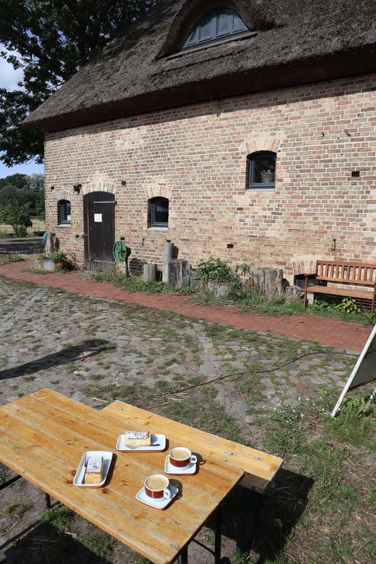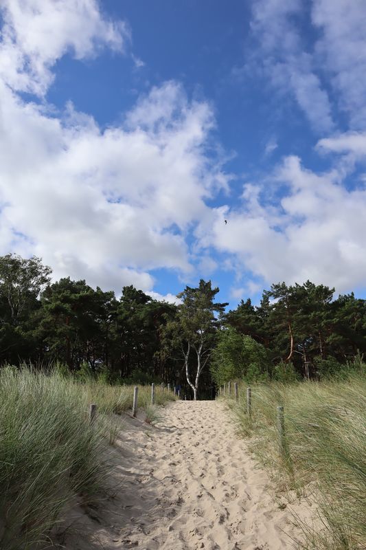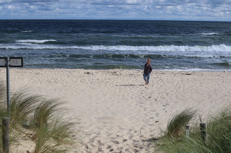 Wir fahren weiter auf der kleinen Küstenstraße vorbei an Niechorze, mit seinem schicken Leuchtturm direkt an der Steilküste. Es geht durch viele, kleine Orte mit der uns vertrauten Landschaft und Architektur der Gebäude, wie an unserer deutschen Ostseeküste. In Swinemünde nehmen wir die Fähre über den einen Arm des Stettiner Haffs, streifen südlich die Stadt und rollen unspektakulär über den kleinen Grenzübergang in Garz auf die Insel Usedom. Es ist schon Abend und wir besuchen spontan Freunde in Mellenthin, dürfen mit unserem Campmobil auf dem ehemaligen Schulhof der liebevoll sanierten, alten Schule übernachten. Wir freuen uns sehr uns so wieder einmal getroffen zu haben, fahren weiter nach Rügen, an Greifswald vorbei. Wir nehmen die letzte Fähre auf unserer Tour in Stahlbrode und schlängeln uns bis zum Mönchgut nach Göhren. Vorher biegen wir noch nach Welzin in die Biokläserei mit ihrem leckeren Käse und Käsekuchen ab. In Göhren dürfen wir auf dem Regenbogencamping zu Gast sein bei Gesines Bruder, der dort auch Urlaub macht. So haben wir noch einen genussvollen Abschluss bei Sonnenschein und Wind und auch mal Regen, an einem wunderbaren, breiten Strand mit Blick in Richtung Sassnitz. Die Kreidefelsen blitzen im Sonnenlicht. Am Mittwoch fahren wir gemeinsam nach Alt Reddevitz und Middelhagen, besichtigen die uns noch unbekannte Kirche neben der alten Dorfschule. Der Donnerstag bringt für uns den Abschied von der Ostseeküste und wir fahren den langsamen Rückweg über die alte Küstenstraße 105 zurück nach Hause. Wir sind sehr dankbar über die gesunde Rückkehr. All die vielen Eindrücke gilt es jetzt erst einmal noch etwas zu verarbeiten. Es war eine wunderbare Reise um unsere geliebte Ostsee.