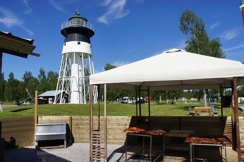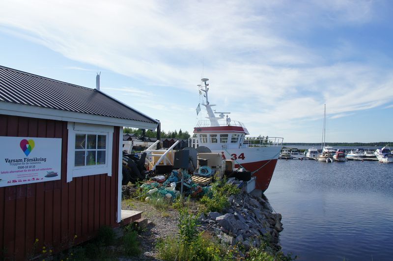 Am nächsten Tag besuchten wir die nächste größere Stadt an der Küste, Skellefteå. Im Stadtteil Nordanå direkt am Wasser gelegen befindet sich der romantische und sehr gepflegte alte Ortkern, mit einer sehenswerten, noch bewohnten Holzhäuserstadt. Nach einem Bummel durch die modernere Innenstadt, fahren wir weiter in Richtung Piteä. Direkt an der Straße vorher besuchen wir in Järve einen kleinen Leuchtturm und genießen den Blick über die Bucht. Die kleine Stadt Piteä gibt sich schon montäglich verschlossen, wir dürfen noch kurz einen Blick in die alte Holzkirche werfen. Eines der wenigen, nach einem verheerenden Stadtbrand übrig gebliebenen, alten Gebäude. Wir suchen uns einen Ort für die Nacht und erkunden den ruhigen Hafen von Renöhamn. Es ist sehr still und wir genießen den Abend und die Mittsommernacht.