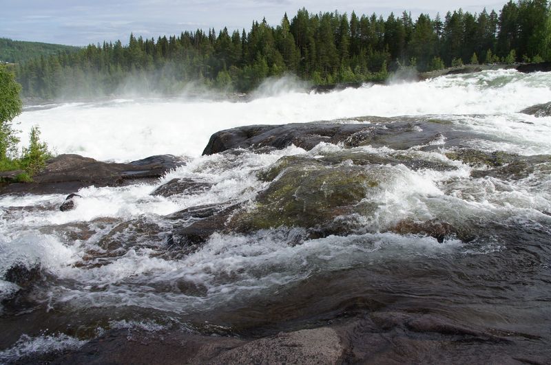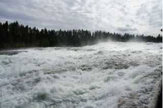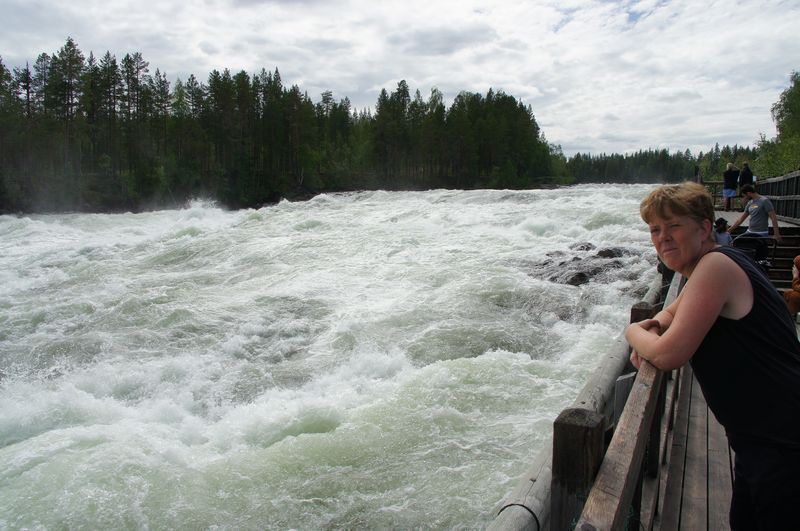 Am Dienstag entschließen wir uns spontan noch einmal knapp 100 Kilometer am Fluss Piteälven aufwärts zu fahren. Wir haben von einem Wasserfall Naturschauspiel gelesen. Es sind die größten Stromschnellen Nordeuropas, bei Storforsen. Es ist sehr beeindruckend mit welcher ungebremsten Kraft der Fluss an dieser Stelle ungefähr 80 Meter in die Tiefe schießt. Schön, dass wir heute Nachmittag von der Küste abgewichen sind.