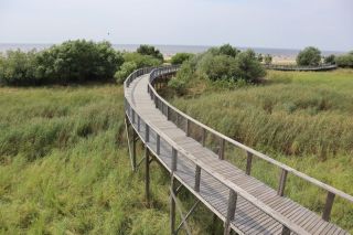 Am Dienstag sind wir bald im Zentrum von Pärnu angekommen. Die alte Hansestadt zeigt sich uns mit einigen schönen, historischen Bauten, die nach Krieg und Zeit in der Sowjetunion vom alten Glanz wiederspiegeln. Wir besuchen das Museum für zeitgenössische Kunbst mit einer sonderausstellung zum Thema Frau und Mann und bewundern schöne Streetart. Bemerkenswert ist das historische Walltor, einzigartig im baltischen Raum. Der breite Sandstrand ist gut besucht. Pärnu ist die Badewanne Estlands. Eine schöne Brücke führt über die breiten Küstenwiesen. Am Abend suchen wir uns einen kleinen Zeltplatz wieder etwas nördlicher, an einem kleinen See. Heute Morgen mussten wir zeitig zur Fähre nach Kihnu starten. Wir lassen unser Auto am Hafen stehen und genießen die einstündige Überfahrt in der Morgensonne. Die kleine Insel ist ein landschaftliches Kleinod und wenig mit PKWs befahren. Wir können uns am Hafen Fahrräder mieten und fahren über die schmalen Straßen von Nord nach Süd, kreuz und quer. Der gußeiserne Leuchtturm ist zu besteigen, entlang der Wendeltreppe ist eine liebevolle kleine Ausstellung gestaltet. Am Fuße des Turmes gibt es ein besonders leckeres, hier auf der Insel von der Leuchtturmwärterin hergestelltes Eis. Das Wachholdereis hatten wir noch nie auf der Zunge, passt gut zu den vielen Büschen, die unseren Radweg säumen. Ein leckeres Grillgericht kann uns stärken und die Zeit ist fast knapp geworden und wir radeln zur Nachmittagsfähre zurück nach Manilaid Kihnu.