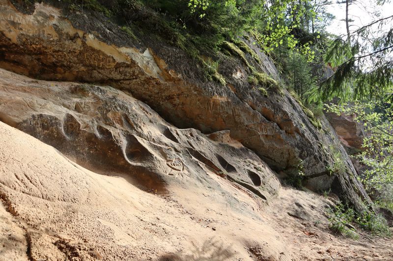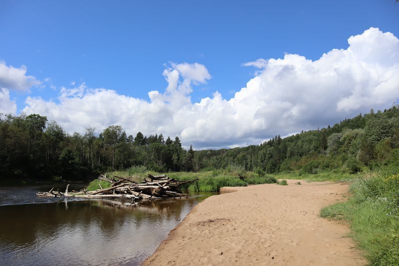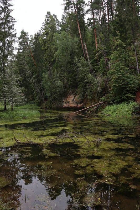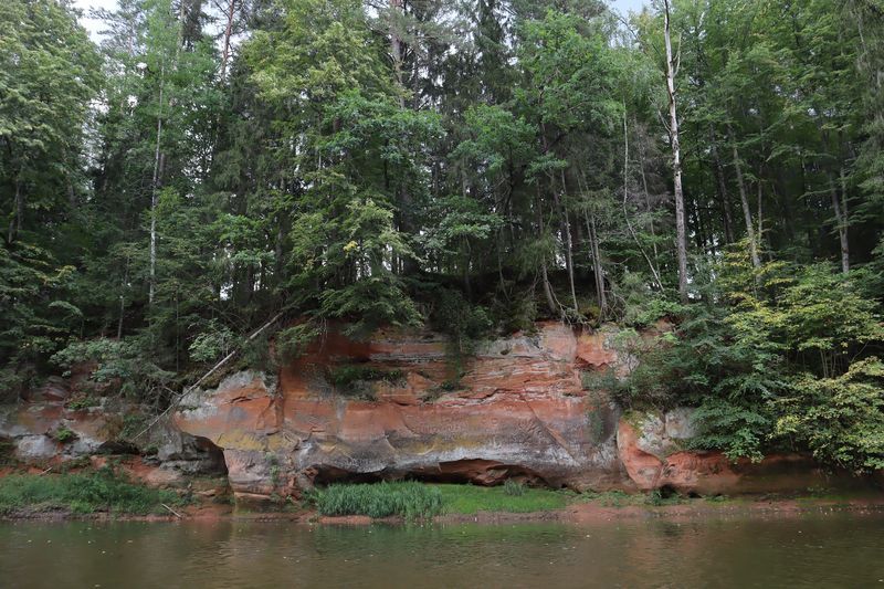 Wir übernachten am Flussufer der Gauja und starten zu einer Wanderung durch die vielfältige, eiszeitlich geprägte Landschaft des Nationalparks. Wir verlaufen uns ein wenig im Wald und laufen auf alten Eichenalleen, mitgenommen von einem kleinen Reisebus, den Weg zurück suchend. Die Landschaft wird immer wieder geprägt durch Aufbrüche farbigen Buntsandsteins, vier bis fünf Meter hoch und an den Flussufern schon mal über 20 Meter steil nach oben ragend und in der Sonne vielfarbig leuchtetnd. Nach der 20 Kilometer Wanderung suchen wir uns am Stadtrand von Cesis einen neuen Stellplatz an einem kleinen See. Hier fühlen wir uns sehr wohl und können noch für den Sonntag eine Kajakrtour buchen. Unproblematisch werden wir vom Campingplatz mit einem Kajak zum Flussufer gebracht, wo wir im Sonnenschein eine wundervolle Fahrt über den flachen Flusslauf machen. Vom Fluss aus sieht man besonders gut die Sandsteinfelsen mit ihrem tollen Farbspiel. Nach 17 Kilometern Flussabfahrt werden wir kurz hinter einer kleinen Kabelfähre wieder abgeholt und entspannen abends mit warmem Essen in einem netten Café am Zeltplatz.