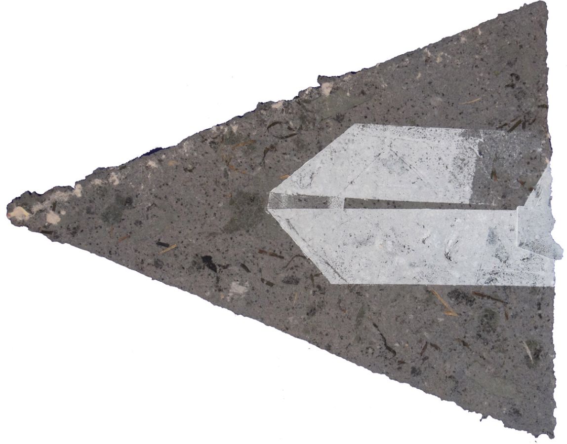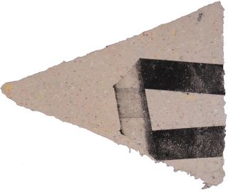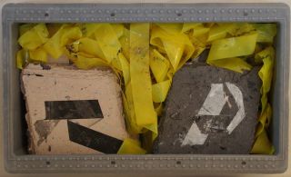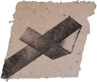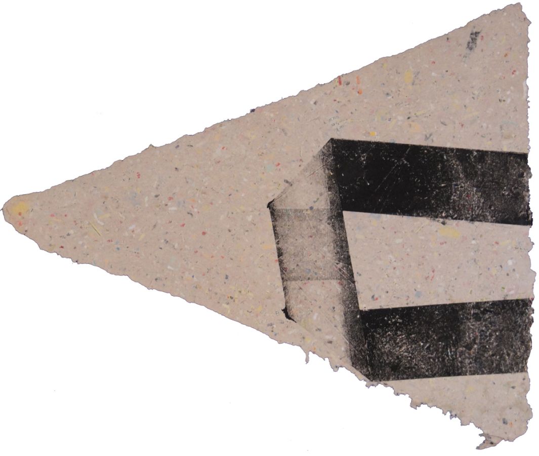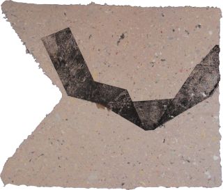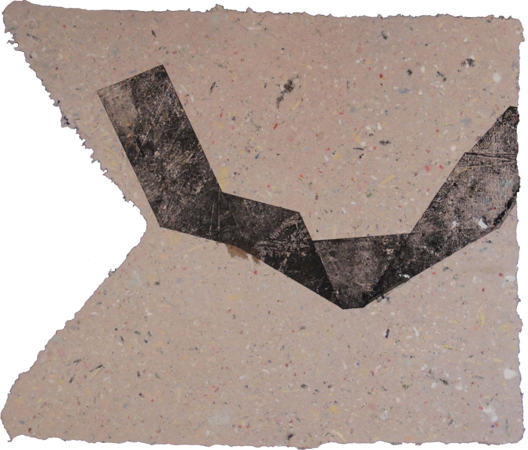 Fischkiste, gelbes Kunststoffband, handgeschöpftes Papier, Materialdruck
