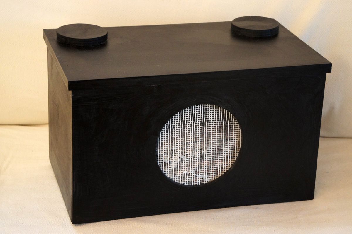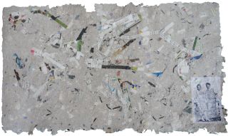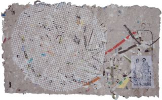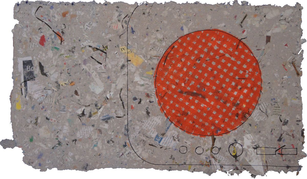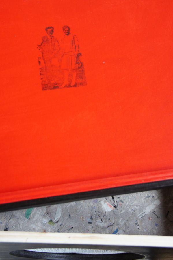 Tagebuchobjekt "Radio Aakirkeby"handgeschöpftes Papier, Materialdruck, schabloniert, 87 Blätter im Holzbehälterje 27 x 46 cm