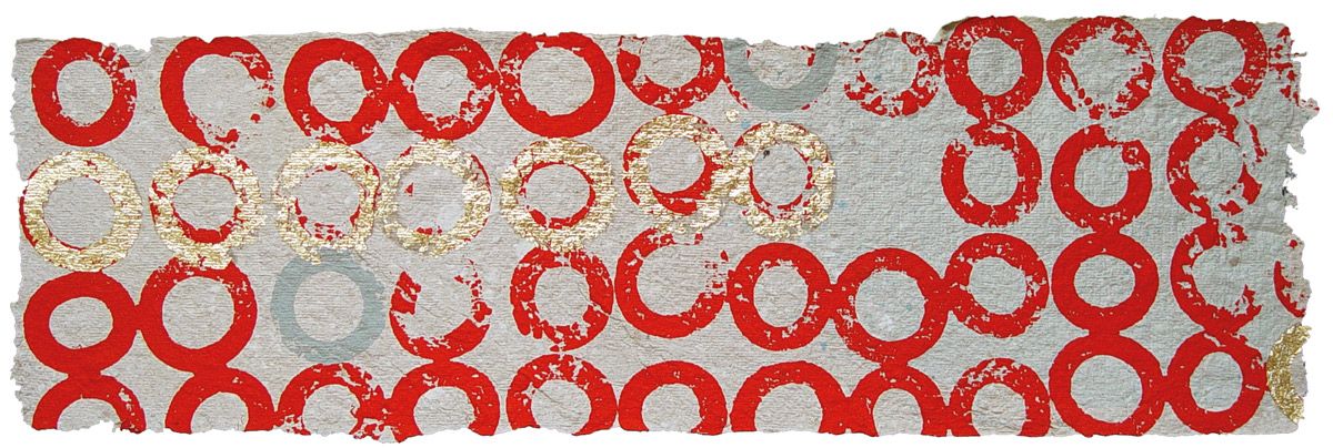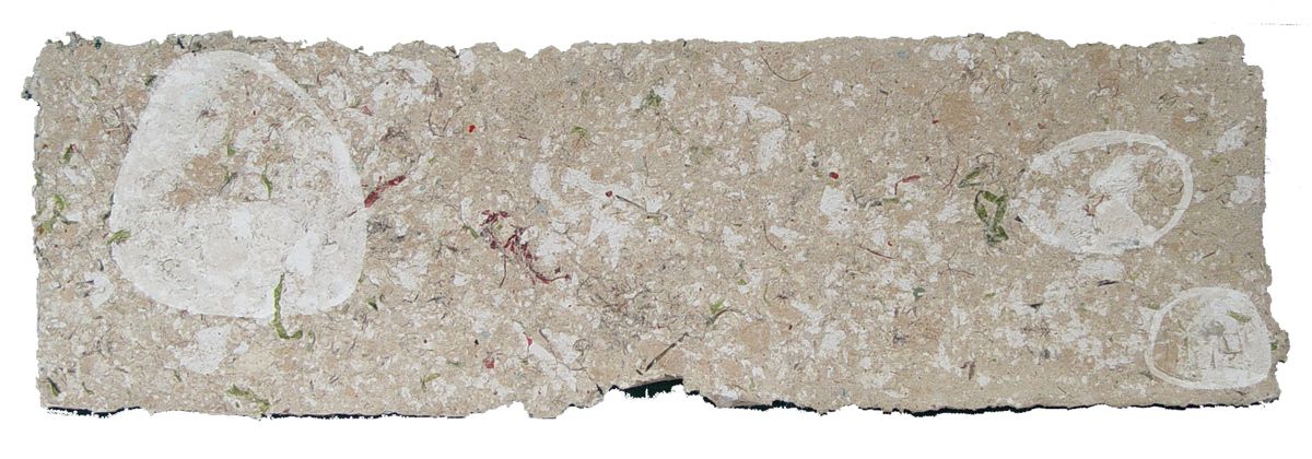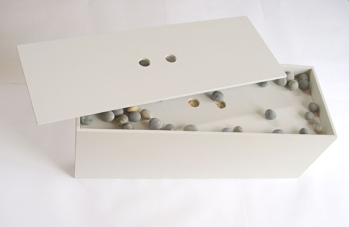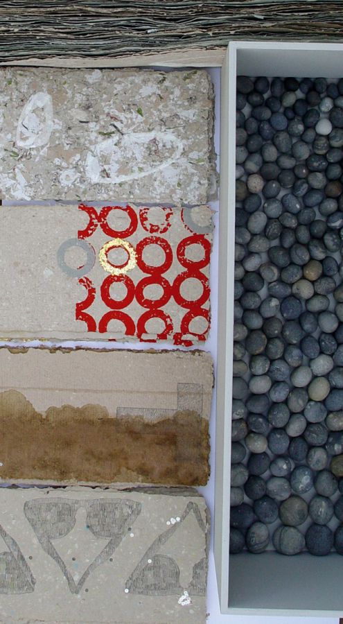 90 Blatt handgeschöpftes Papier in einem Holzbehälter mit einer Sammlung Wallsteinen