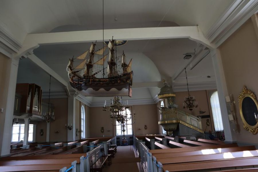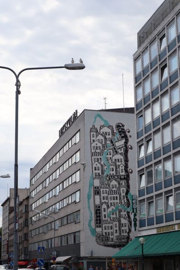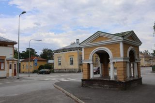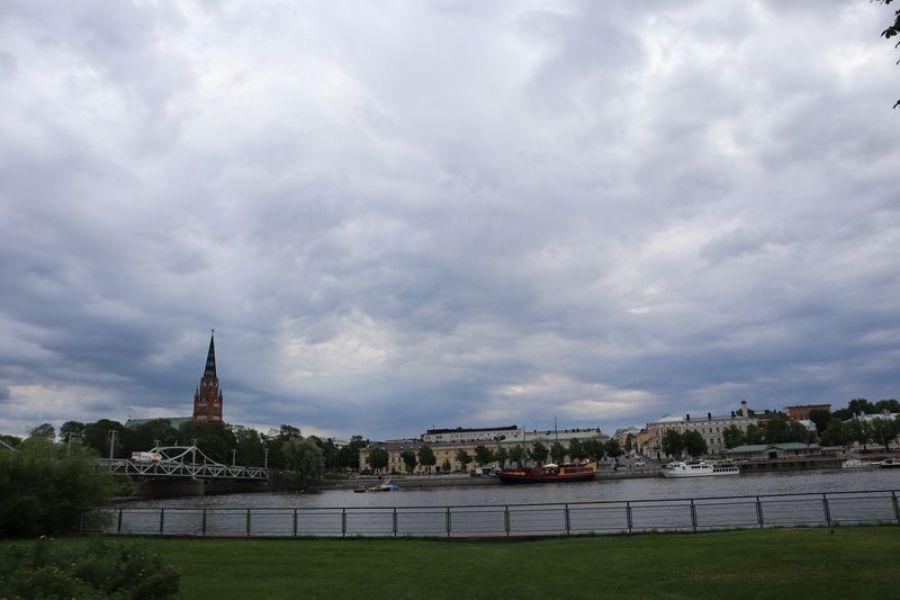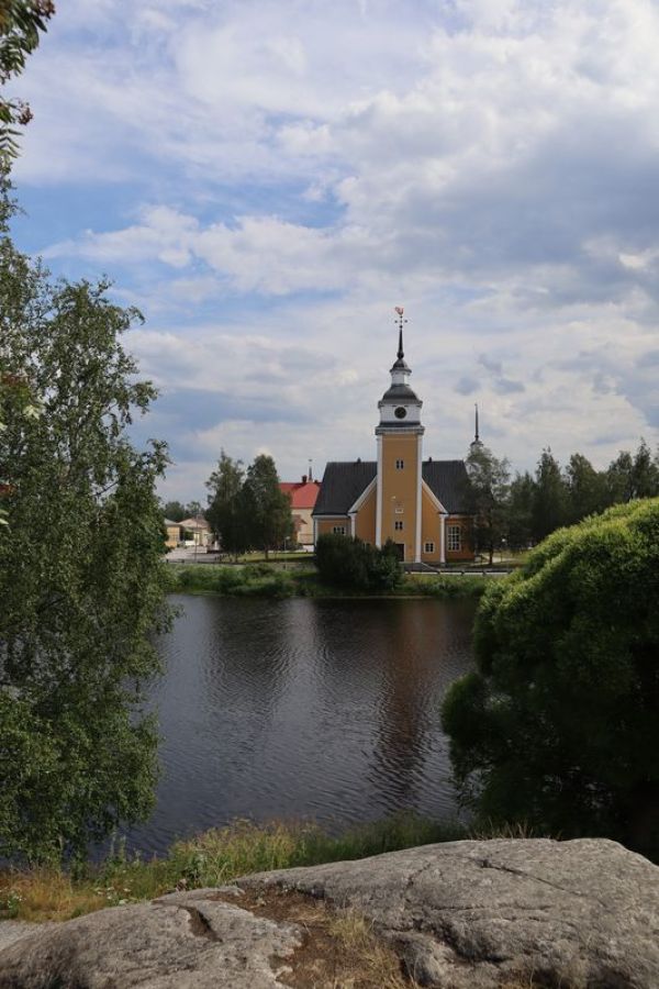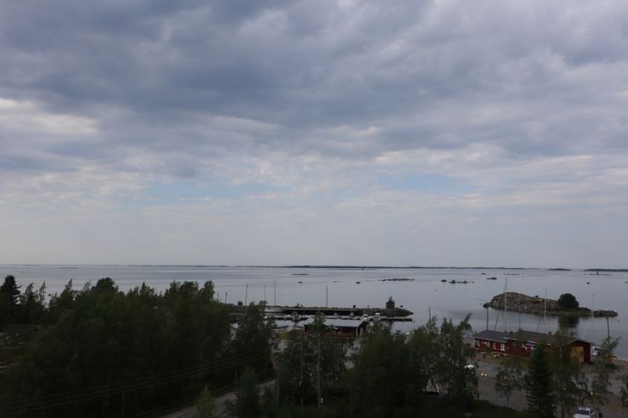 Weiter gefahren nach Jakobstad, halten wir kurz an einer grüßenden Windmühle, die auf die schwedische Bevölkerung der Region noch einmal aufmerksam macht. Das hängt mit dem schon seit hunderten von Jahren hier nördlich verlaufendem Postweg nach Schweden zusammen. Nach der Nacht auf einem stillen Platz, auch wieder am Wasser, finden wir in Jakobstad am Ende von zwei dutzend alten Holzhäusern ein kleines verstecktes Café mit super leckeren, schwedischen Kardamomschnecken auf unserem Teller. Den Rückweg zum Auto säumt eine Handwerksstube, wo ich mich, bei 25 Grad im Schatten, für warme Winterhandschuhe entscheide. Nykarleby mit seiner markanten Kirche am Fluss lassen wir hinter uns und sind bald in Vaasa, eine der Großstädte hier an der finnischen Ostseeküste. In der abstrakten Großstadt versuchen wir auch ein paar schöne Ecken kennenzulernen. Ja, es gibt eine schön restaurierte Markthalle mit noch offenen Geschäften, was am späten Nachmittag auch schon etwas Besonderes ist. Am Hafen überlegen wir, am nächsten Tag eine kleine Fahrt durch die vorgelagerten Schäreninseln zu unternehmen, und suchen uns einen gepriesenen kleinen Stellplatz; finden ihn auch unterhalb eines Aussichtsturmortes.