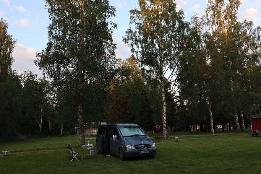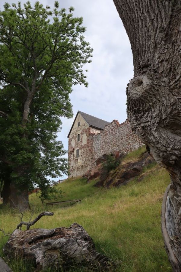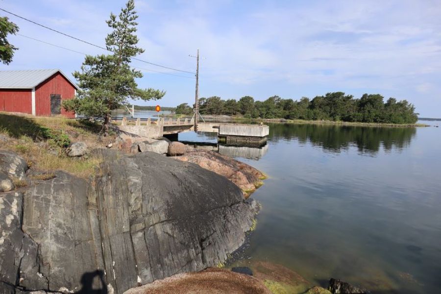 Der Morgen grüßt mit der Fahrt über eine der großen Brücken und einem Fischverkauf. Wir entschließen uns doch nicht Boot zu fahren, sondern fahren viele Kilometer nach Pori über Kristinestad mit ihrer schiefen, sehr alten Holzkirche. Übrigens sind die braunen Schilder "Rantantie Strandvägen" an der Küste allgegenwärtig, führen über schöne, kleine Küstenstraßen. Das hat eine Weile gedauert, bis wir dahinter gekommen sind. Pori ist dann mal ziemlich hässlich, es gibt einen Kern mit Häusern aus dem 19.Jahrhundert in Neorenaissance, Neogotikkirche und einem dann doch versöhnlichem Blick über den Fluss von einer alten Baumwollspinnerei, jetzt Kultur und Einkaufszentrum. Am Spätnachmittag sind wir auch bald in Rauma, die Stadt mit ihrem historischem, gepflegtem Holzhäuserzentrum und der alten Klosterkirche ist schon sehr still. Es gibt aber noch ein süßes, finnisches Eis und wir wollen noch einen Platz für die Nacht finden. Unsere park4night App lobt einen kleinen Campingplatz, wieder auf einer der unzähligen Schärenzungen. Da ist noch ein wirklich toller Platz am Wasser und wir werden sehr freundlich empfangen. Am Morgen entdecken wir den Blick zur unweiten größeren Schärenbrücke, das Tor zur Schärenringstraße vor Turku. Dann sind wir doch schon sehr nah an Åland und Turku. Hier ergibt sich auch noch ein sehr nettes Gespräch mit unseren älteren,deutschen Wohnmobilnachbarn. Wir fahren los und fahren dann doch nach links zum Schärenring und nicht nach Naantali zur Finnlinesfähre. Wir sind wiedermal spontan und nehmen schon bald die erste gelbe Kabelfähre und bald eine der ersten größeren Autofähren. Jetzt verlassen wir laut Schild das "richtige Finnland", werden auch hier sehr freundlich mit einem Fahrplan für die Fähren in diesem Sommer von einer jungen Frau begrüßt. Hier am Hafen gibt es frische Pizza und guten Espresso, selten in Skandinavien. Wir landen in Brändö, sehen die Kirche und fahren mit Fähre weiter zur Insel Kumlinge. Es ist schon abends und wir stehen gut, mit Strom am ruhigen Hafen. Åland grüßt übrigens spätestens hier mit seinem rötlichen Straßenbelag, das markante Gestein auf Åland - ein roter, brüchiger Granit. Im kleinen Hafenrestaurant gibt es ein feierliches Frühstück und die 9 Uhr Fähre bringt uns auf die Hauptinsel. Hier besuchen wir zuerst die Kirche von Vardö. Eine Attraktion Ålands ist die Burg Kastelholm und liegt auch auf unserem Weg nach Mariehamn. Neben der Burganlage gibt es ein tolles Freilichtmuseum, liebevoll gehegt und die Besucher werden freundlich geführt, besonders die Kinder mit einbezogen. Nach einer viertel Stunde sind wir auch schon in der Insaelhauptstadt, Fährhafen und Bootshafen und Einkaufsstraße. Die Kleinstadt ist gut besucht und wir staunen über den Museumsviermaster "Pommern", der hier schon ewig zwischen all den modernen Großfähren und Seglern am Hafen prangt. Das schwüle Sommerwetter schiebt uns aus dem Ort und wir fahren auf eine der kleinen Inseln vor der Stadt, Granö. Wunderbarerweise wohnen wir hier bei einem alten Bekannten von TO. In der Vogelbucht hat er vor einigen Jahren eines seiner Buchobjekte geschöpft. Henry freut sich uns zu treffen.