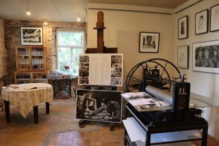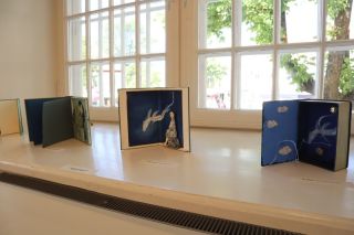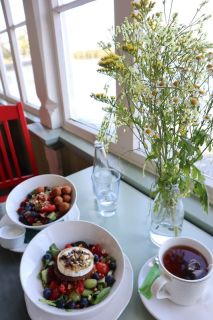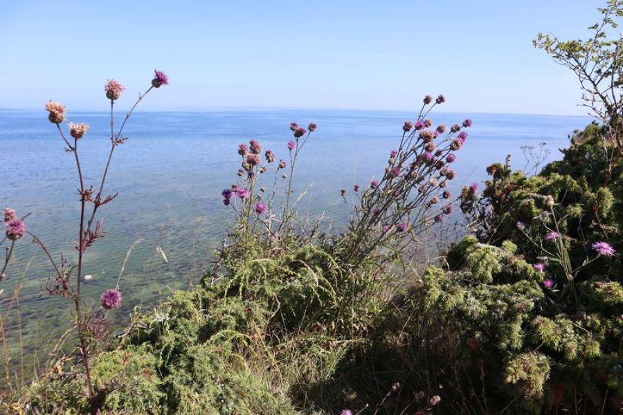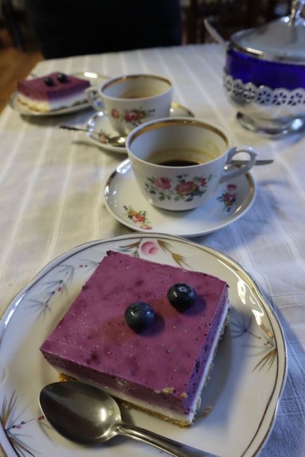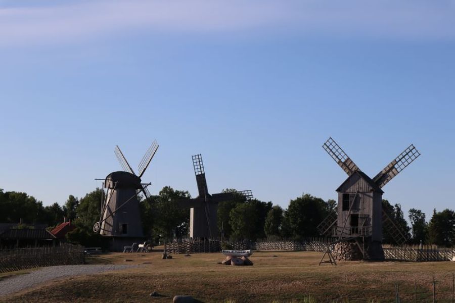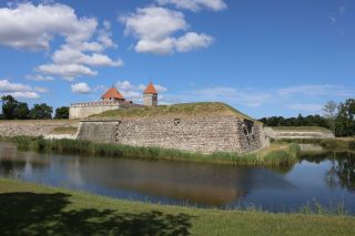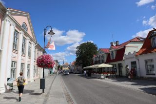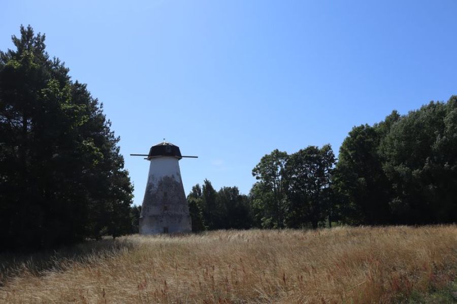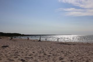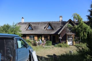 Der Freitagmorgen beginnt für uns mit frischen Brötchen regionaler Art und wir sind bald in der naheliegenden kleinen Kurstadt Haapsalu. Wir umrunden die alte Bischofsburg, leider ist der Eintritt für die Dombesichtigung unangemessen und es springt dafür der Besuch eines Künstlerhauses mit Grafikwerkstatt und tollen Arbeiten der Künstlergemeinschaft heraus. In Haapsalu ist es still und wir entdecken einen uralten Friedhof mit Kapelle und drehen die Stadtrunde vorbei am schön erhaltenen Zarenbahnhof. Am Ende der beiden Landzungen an denen die kleine Stadt liegt, fallen wir förmlich in den alten Kultursaal des Kurortes, wo wir lecker und frisch mit Seeblick essen. Direkt neben dem kleinen Markt, wo unser Auto parkt, sehen wir noch die Gebäude der hiesigen Kunstschule. Da ist natürlich Ferienzeit. Wir haben uns bei unseren Gastgebern in Pärsama auf der Insel Saaremaa für den Abend angesagt und müssen leider sehr lange wegen der Fährüberfahrt anstehen. Um so schöner ist die Überfahrt dann endlich nach Muhu und wir werden noch so spät mit einem leckeren Abendbrot auf dem Rukkilillehof erwartet. Hier in Pärsama hat TO vor neun Jahren eines seiner Tagebuchobjekte geschöpft. Schon damals haben wir uns hier sehr wohl gefühlt. Wir wollen zwei Tage auf der schönen Insel verbringen. Am Sonnabend haben wir uns einen Marktbesuch in Kuressaare vorgenommen. Dort erleben wir zufällig den Auftritt einer estnischen Folkloregruppe. Wir bummeln durch die Inselhauptstadt, entdecken Buchkunst und Grafik und umrunden die alte Bischofsburg. Am Nachmittag zieht es uns an den nördlichen Strand Tukhana. Ein guter Ort zum Abhängen. Am Sonntag gibt es auf der Insel einen Tag der offenen Höfe. Wir verkossten süßen Wachholdersirup und spazieren durch den schönen Garten. Da fahren wir auch mal über staubige Schotterstraßen, vorbei an den Windmühlen von Angla und der schroffen Pangaküste. Die Kirche in Kihelkonna hat einen frisch renovierten, uralten Glockenturm. Heute Morgen gibt es nochmal ein nettes Frühstück bei Laleickes und wir starten zurück zur Fährüberfahrt nach Kuivastu. Ein Halt an der Kirche in Karja muss doch noch sein zum Abschied und wir sind bezaubert von den uralten Skulpturen und dem magischen Licht der farbigen Glasfenster in den allzu kleinen Fensteröffnungen in den dicken Mauern. Ein Blick geht zurück über die spiegelglatte Wasserfläche auf die Küste hinter uns und wir entscheiden uns für die Landstraße in Richtung Pärnu, teilweise auch wieder eine Herausforderung für unser Auto, Schotter und Staub. Dieses langsamere Fahren lässt uns jedoch alte Windmühlen und Kirchen entdecken. Aus einer offenen Tür klingt Cellomusik. Ein spontanes Wendemanöver lässt uns eine alte Schule finden und wir werden am Ruhetag des kleinen Cafés darin zu Blaubeerkuchen und Espresso eingeladen. Am Nachmittag landen wir auf einem Campingplatz direkt am weißen Sandstrand vor Pärnu, genießen die Ostseeluft, können erfrischt baden und auch wiedermal Bilder und Text vorbereiten.