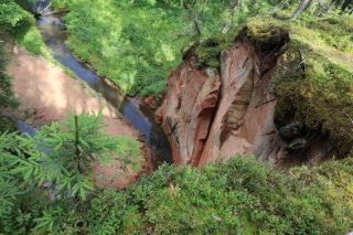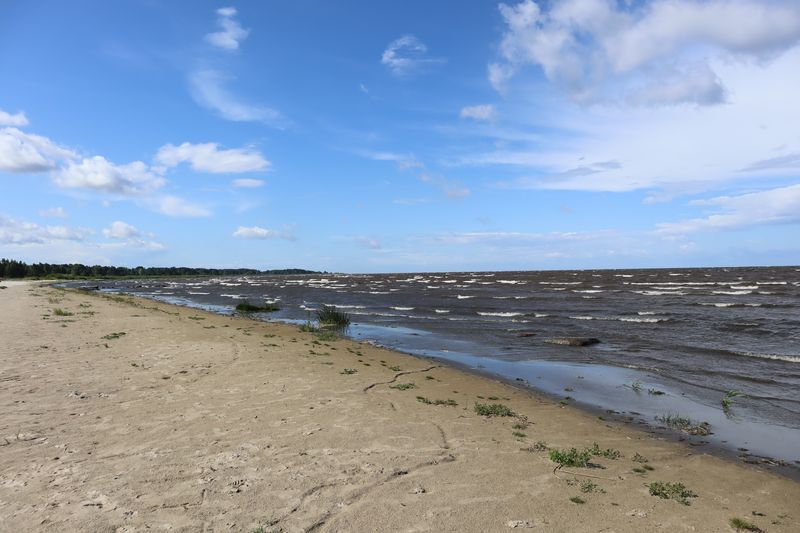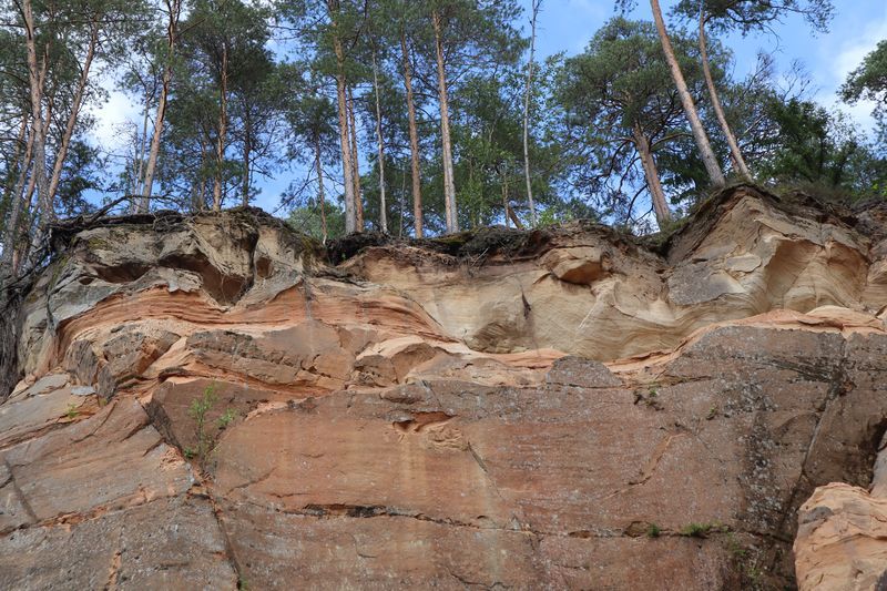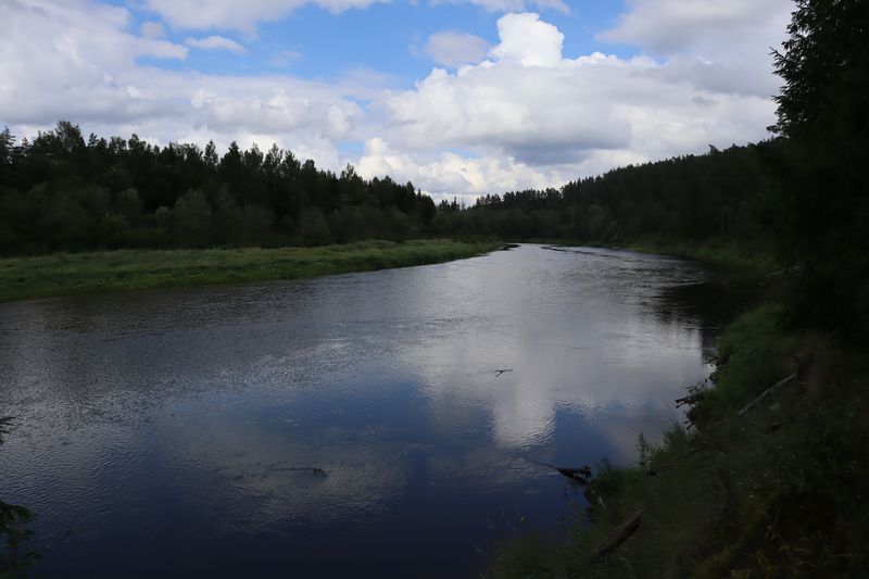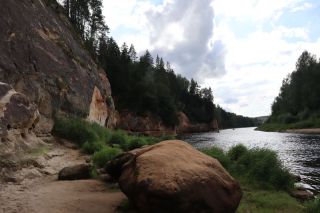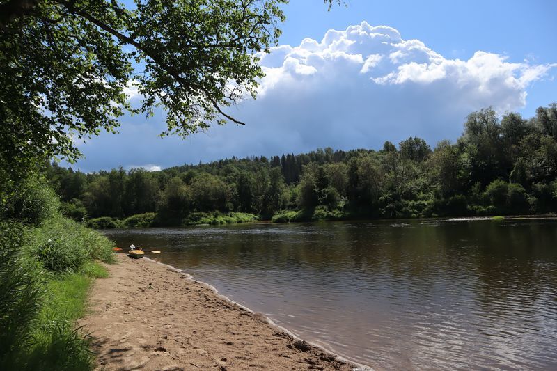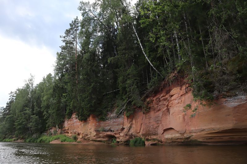 Wir übernachten am Flussufer der Gauja und starten zu einer Wanderung durch die vielfältige, eiszeitlich geprägte Landschaft des Nationalparks. Wir verlaufen uns ein wenig im Wald und laufen auf alten Eichenalleen, mitgenommen von einem kleinen Reisebus, den Weg zurück suchend. Die Landschaft wird immer wieder geprägt durch Aufbrüche farbigen Buntsandsteins, vier bis fünf Meter hoch und an den Flussufern schon mal über 20 Meter steil nach oben ragend und in der Sonne vielfarbig leuchtetnd. Nach der 20 Kilometer Wanderung suchen wir uns am Stadtrand von Cesis einen neuen Stellplatz an einem kleinen See. Hier fühlen wir uns sehr wohl und können noch für den Sonntag eine Kajakrtour buchen. Unproblematisch werden wir vom Campingplatz mit einem Kajak zum Flussufer gebracht, wo wir im Sonnenschein eine wundervolle Fahrt über den flachen Flusslauf machen. Vom Fluss aus sieht man besonders gut die Sandsteinfelsen mit ihrem tollen Farbspiel. Nach 17 Kilometern Flussabfahrt werden wir kurz hinter einer kleinen Kabelfähre wieder abgeholt und entspannen abends mit warmem Essen in einem netten Café am Zeltplatz.