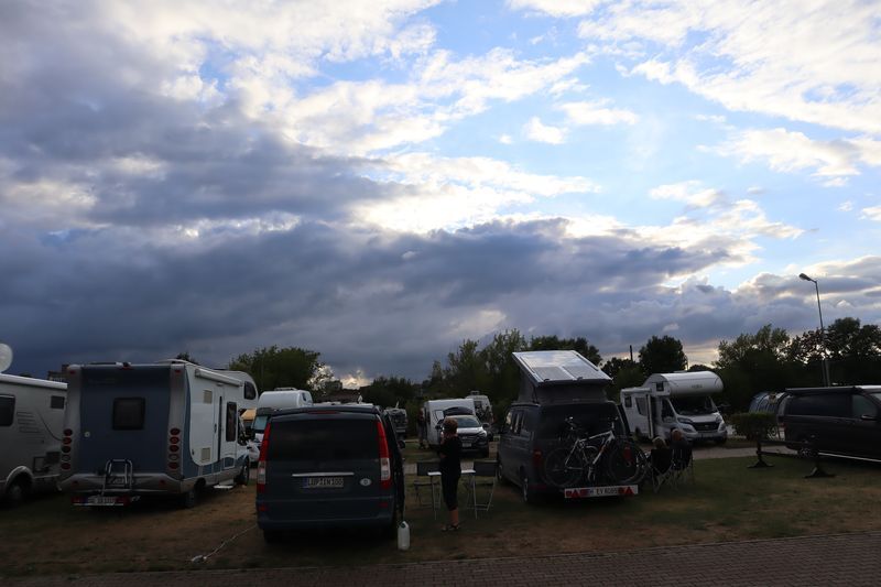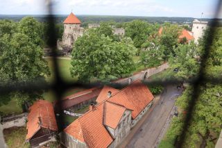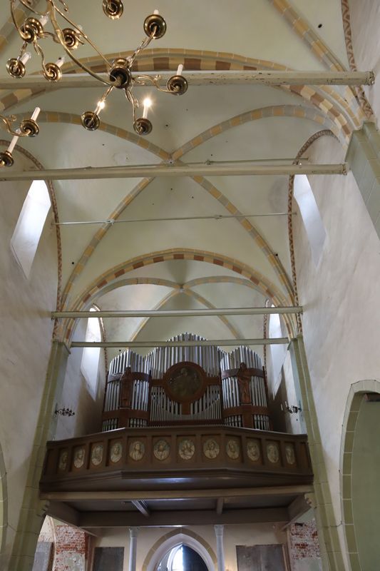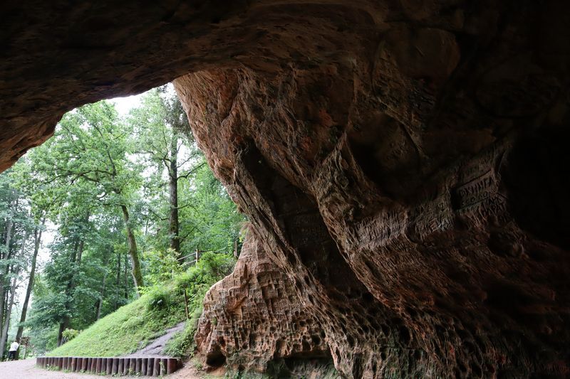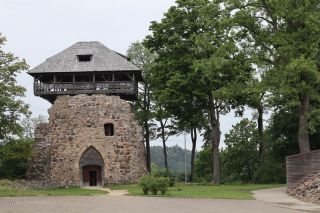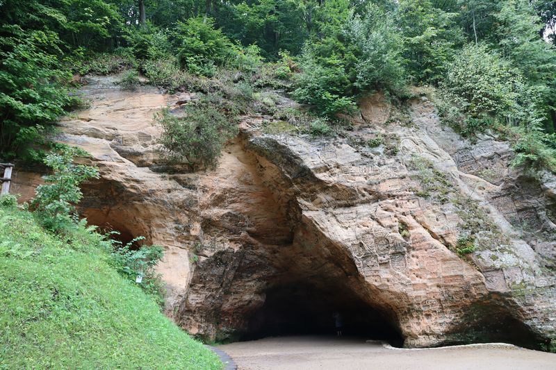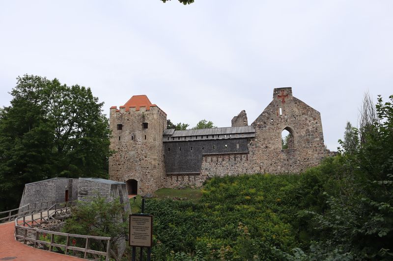 Heute Morgen wollen wir noch die kleine Stadt Sigulda besuchen. In der evangelischen Kirche gibt es einen netten Begrüßungstisch, Knopfkunst hinter der Orgel und einen Blick vom Turm. Unweit besichtigen wir noch die Burgruine des Livländischen Kreuzritterordens und das frisch renovierte neue Schloss mit seinen wertvoll ausgestatteten Innenräumen. Wir durchqueren noch einmal das Tal. Vom Turm des neuen Schlosses haben wir schon die Mauern der Burgruine Treiden gesehen. Vom dicken Turm aus haben wir eine schöne Rundsicht über das Flusstal. Dicht dabei befindet sich das Freilichtmuseum Krimulda, hier wird die Geschichte der alten Liven sehr anschaulich dargestellt. Direkt an der Straße kann man noch einmal eine Sandsteinhöhle bewundern. Der regnerische Tag hat sich doch wieder einmal ereignisreich gezeigt. Die gerade Straße A2 bringt uns unerwartet schnell nach Riga. Wir landen auf dem City Camp Riga mitten im Zentrum der Stadt und es regente auch nicht mehr.