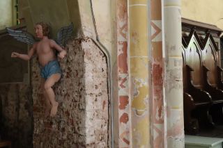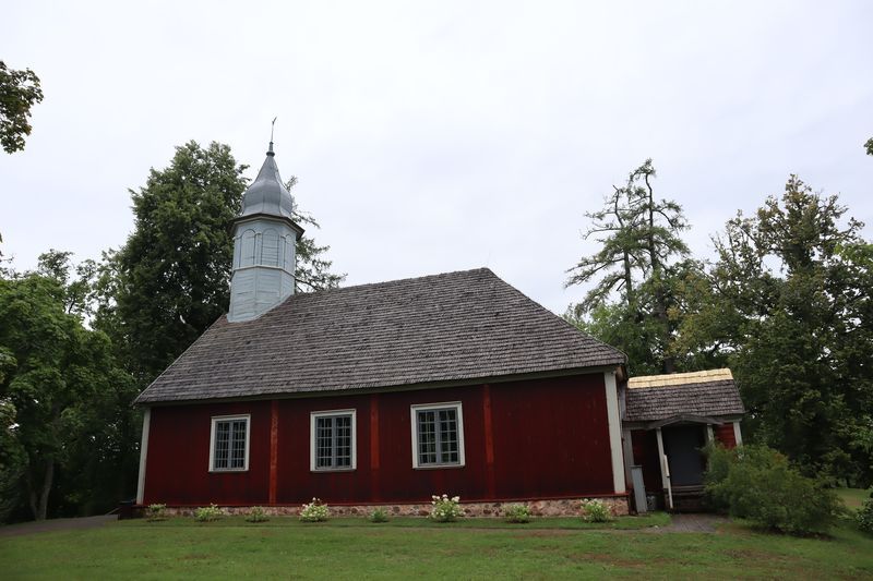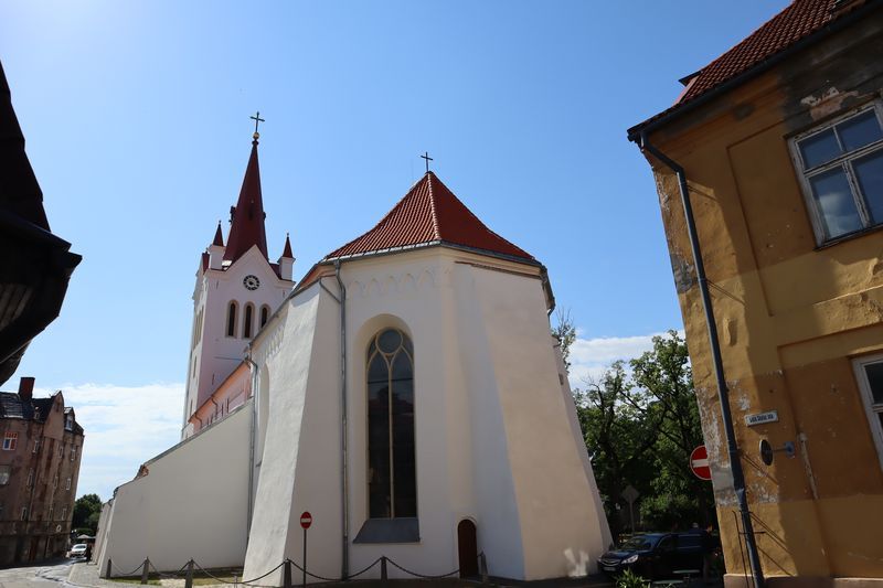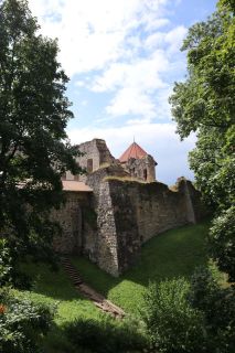 Wir fahren noch einmal in der Bucht von Pärnu entlang bis zu einem kleinen Campingplatz, Takhuranna. Auf dem liebevoll eingerichteten Platz entschließen wir uns einen Waschtag einzulegen und fahren am Freitag entlang der Küste. In einer kleinen Bäckerei nehmen wir mit süßem Gebäck Abschied von Estland, halten kurz an der Landstraßengrenze zu Lettland, die durch eine alte Steinmole, fünf Häuser und sieben Störchen zu erkennen ist. Die schmale Küstenstraße schnürt immer noch schön an der brausenden Ostsee entlang, dass macht Lust auf ein erfrischendes Bad. Auf der Karte und im Reiseführer haben wir vom Gauja Nationalpark erfahren, er liegt etwas von der Küstenroute entfernt. Wir wollen uns die Zeit nehmen und erreichen zwischen einigen Regenschauern die kleine Stadt Cesis. In der trutzigen Katharinenkirche begrüßt uns ein Restengel eines alten Barockaltars und eine Turmaussicht bietet Rundblicke über die Dächer der charmanten Altstadt.