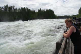 Am Dienstag entschließen wir uns spontan noch einmal knapp 100 Kilometer am Fluss Piteälven aufwärts zu fahren. Wir haben von einem Wasserfall Naturschauspiel gelesen. Es sind die größten Stromschnellen Nordeuropas, bei Storforsen. Es ist sehr beeindruckend mit welcher ungebremsten Kraft der Fluss an dieser Stelle ungefähr 80 Meter in die Tiefe schießt. Schön, dass wir heute Nachmittag von der Küste abgewichen sind.