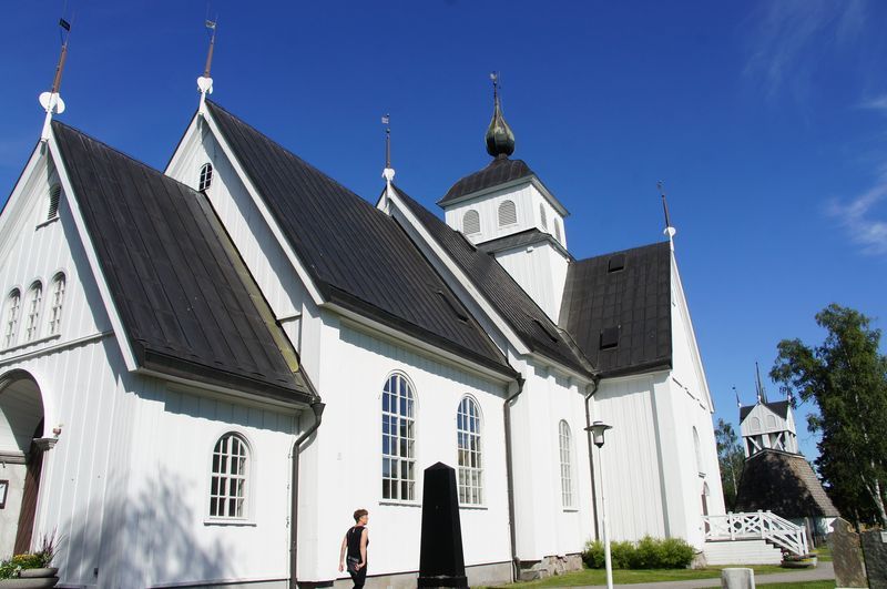 Am nächsten Tag besuchten wir die nächste größere Stadt an der Küste, Skellefteå. Im Stadtteil Nordanå direkt am Wasser gelegen befindet sich der romantische und sehr gepflegte alte Ortkern, mit einer sehenswerten, noch bewohnten Holzhäuserstadt. Nach einem Bummel durch die modernere Innenstadt, fahren wir weiter in Richtung Piteä. Direkt an der Straße vorher besuchen wir in Järve einen kleinen Leuchtturm und genießen den Blick über die Bucht. Die kleine Stadt Piteä gibt sich schon montäglich verschlossen, wir dürfen noch kurz einen Blick in die alte Holzkirche werfen. Eines der wenigen, nach einem verheerenden Stadtbrand übrig gebliebenen, alten Gebäude. Wir suchen uns einen Ort für die Nacht und erkunden den ruhigen Hafen von Renöhamn. Es ist sehr still und wir genießen den Abend und die Mittsommernacht.