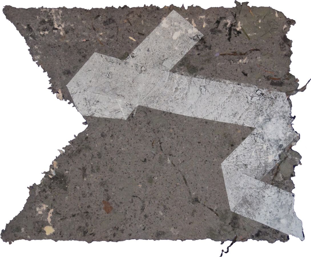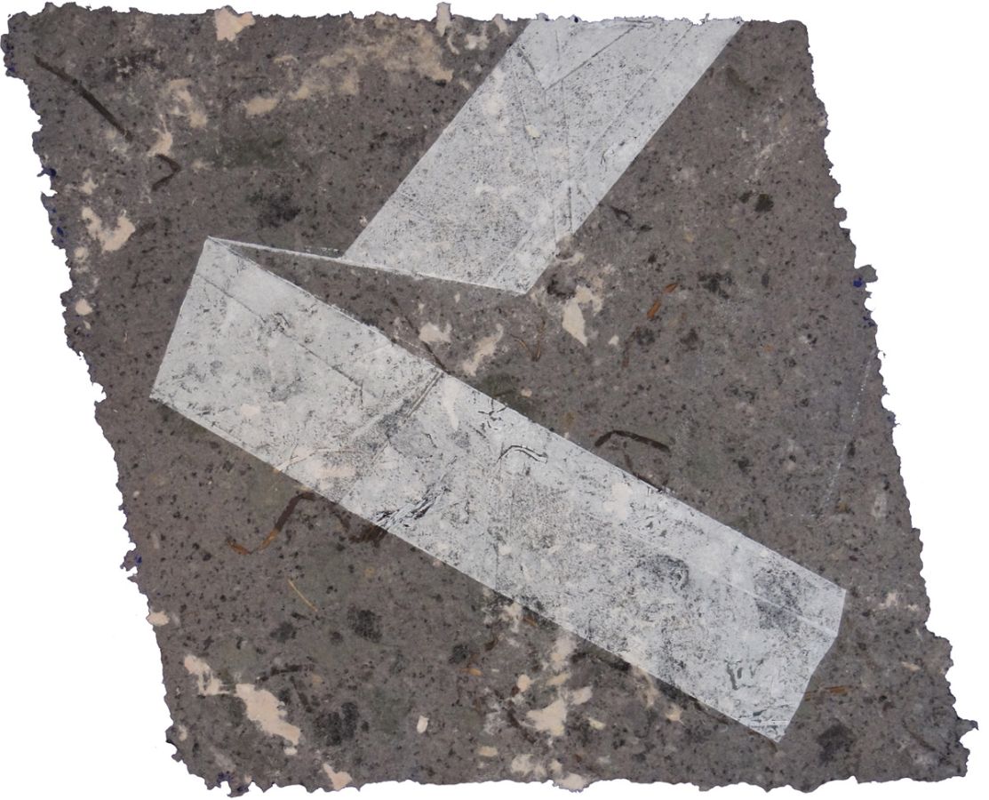 Fischkiste, gelbes Kunststoffband, handgeschöpftes Papier, Materialdruck